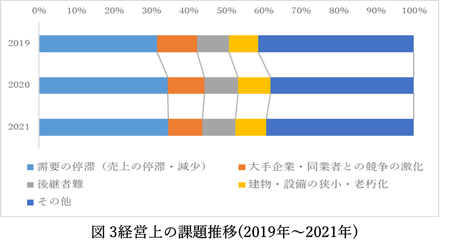 3. 経営者自身が感じている最重要課題は「需要の停滞(売上の停滞、減少)」