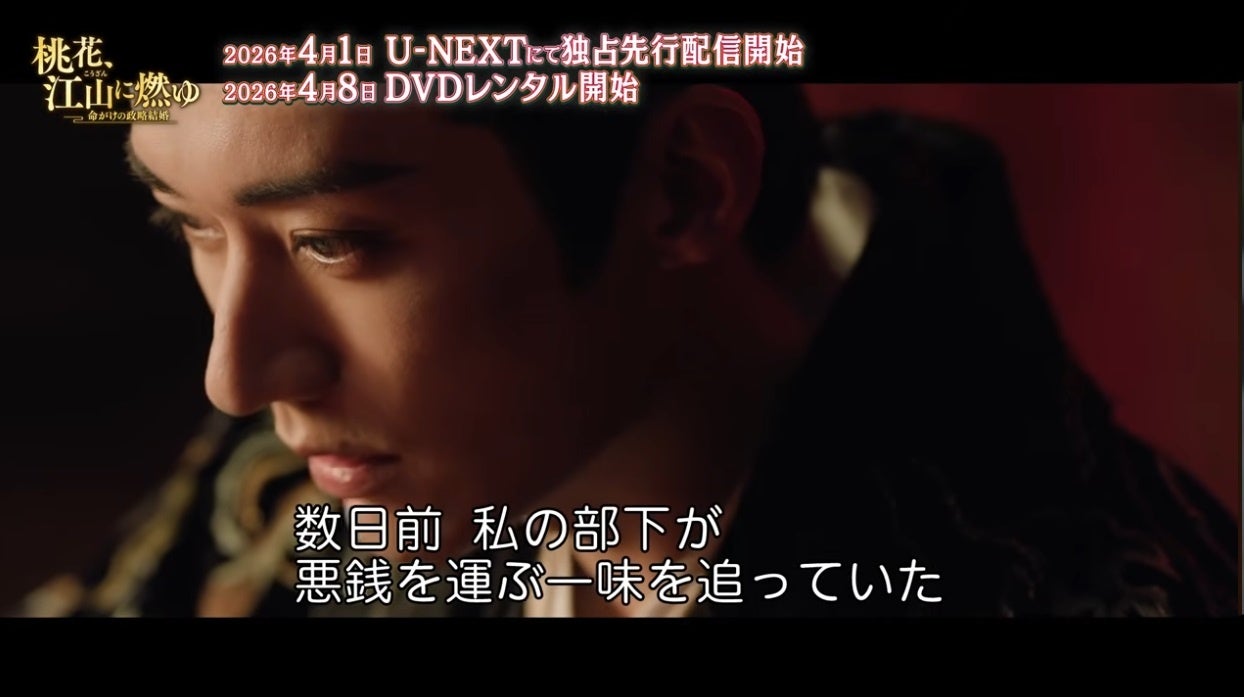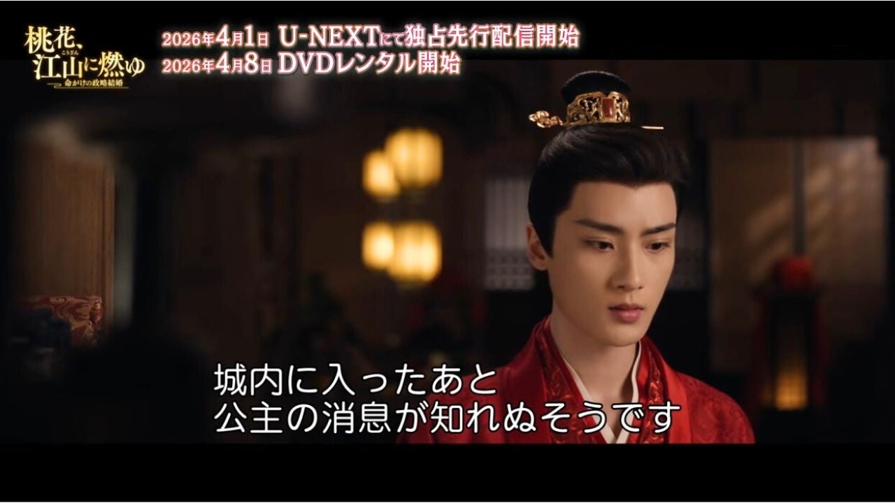 「花間令<かかんれい>~Lost in Love~」リウ・シュエイー×「花令嬢の華麗なる計画」モン・ズーイー 豪華共演、「晩媚と影~紅きロマンス~」の名匠イー・ジュン監督が放つ、愛と復讐が交錯するエモーショナル・ロマンス時代劇「桃花、江山(こうざん)に燃ゆ~命がけの政略結婚~」が、NBCユニバーサル・エンターテイメントの配給により、本日4月1日(水)よりU-NEXTにて独占先行配信開始、4月8日(水)よりDVDレンタル開始いたします。
