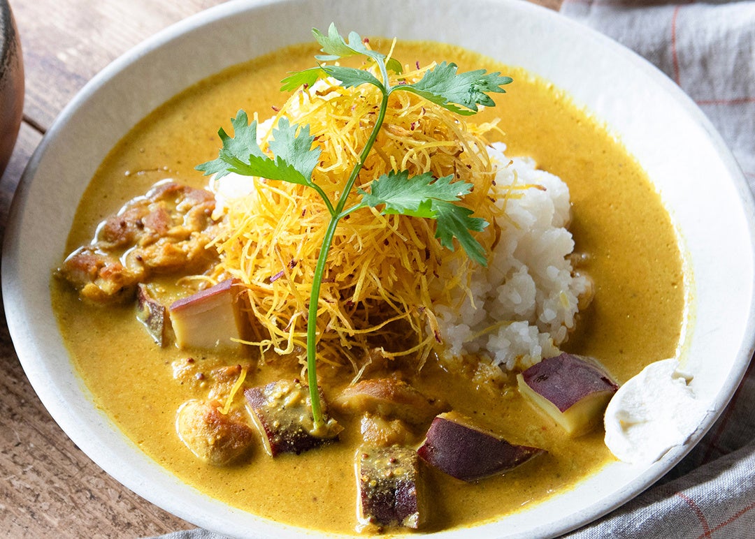 スイーツにとどまらない、甘いやきいもと粒マスタードの酸味という意外な組み合わせを、スパイスから炒めて作るカレーでまとめた【OIMO cafe】の「おいもとチキンの粒マスタードカレー」や、やきいもコロッケをハンバーガーにアレンジしてバンズにもこだわった【やきいもコロ】の「焼き芋コロッケバーガー」、皮付きやきいもがそのまま入った【やきいもフェス SOUP STAND】の「やきいもの味噌汁」や「やきいもの旨辛チゲ」で身体をポカポカに。甘くないメニューも挟みながら、1日中「やきいもフェス」をお楽しみください。