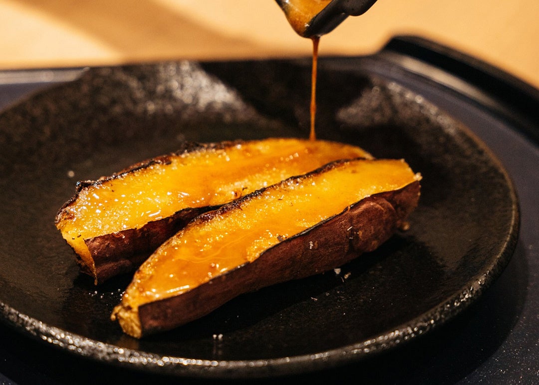 “焼き芋で浪漫と感動を”と掲げる大阪の人気店【浪漫焼き芋 芋の巣】からは、独自製法で焼き上げたやきいもに、3種のチーズ・オリジナルソース・スペイン産レモンはちみつ・黒胡椒を加えた看板メニューの「元祖ハニーチーズ焼き芋」や「コムハニーバター焼き芋」にアレンジ。【しあわせのわごん】の「黄金の焼き芋飴(1本)」は、やきいもを丸ごと飴で包み込んだパリパリ食感がやみつきに。