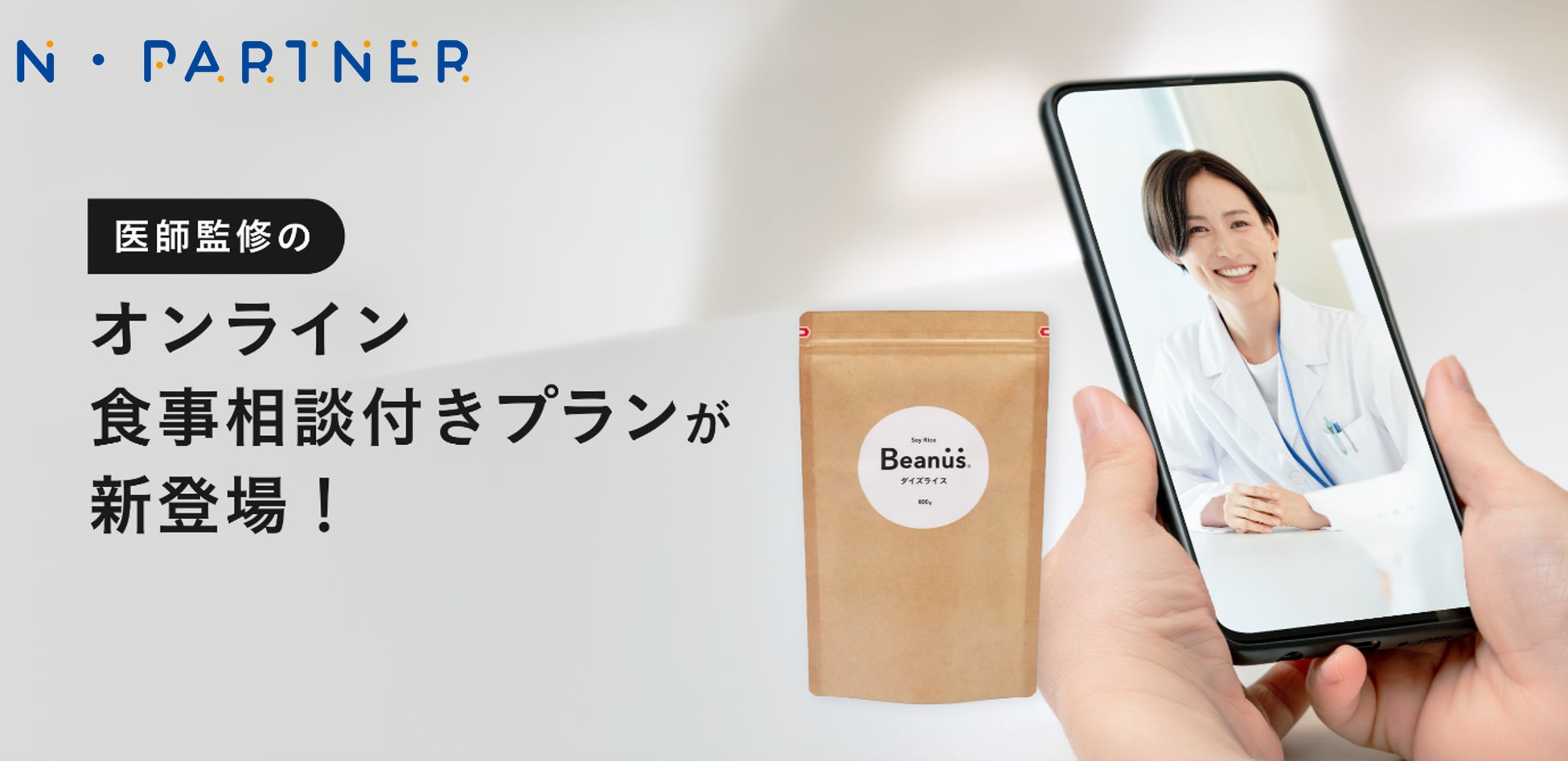 本プランは、糖質を控えた食生活を送りたい、または送っている中で、「ダイズライスを試してみたいけれど、どのように食事に取り入れたらよいか分からない」「体重管理をしたいけれど、一人で続けるのが難しい」といったお悩みを持つ方に向け、専属の管理栄養士がオンライン食事相談を通じて食事のアドバイスを行い、日々の食事管理をサポートいたします。タイプ別に3つのプランを用意しており、各プランはすべて「ダイズライス」と「N・Partnerの管理栄養士によるオンライン食事相談(1回30分)」が含まれています。