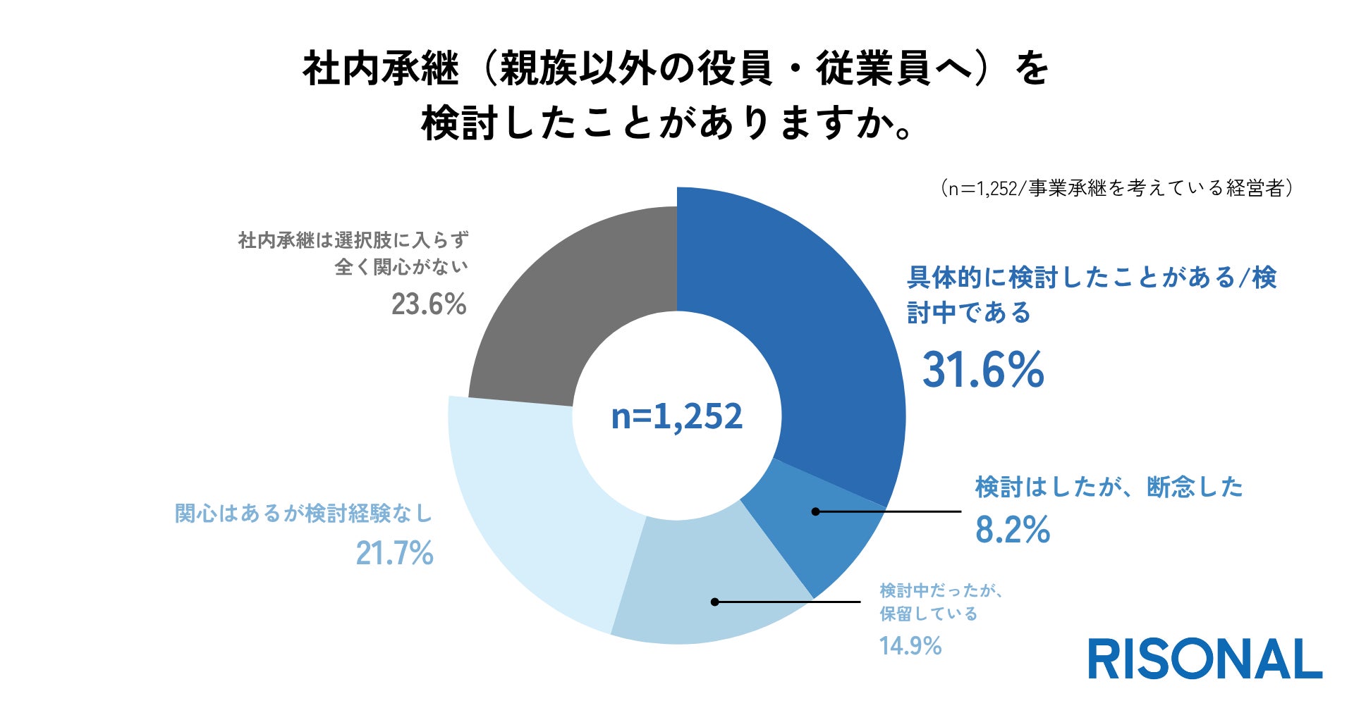 AIを活用した売り手特化のM&Aサービス『RISONAL(リソナル)』を運営するオーナーズ株式会社(本社:東京都港区、代表取締役:作田 隆吉、以下「オーナーズ」)は、全国の経営者を対象に「社内承継に関する調査」を実施し、1,252名から回答を得ました。