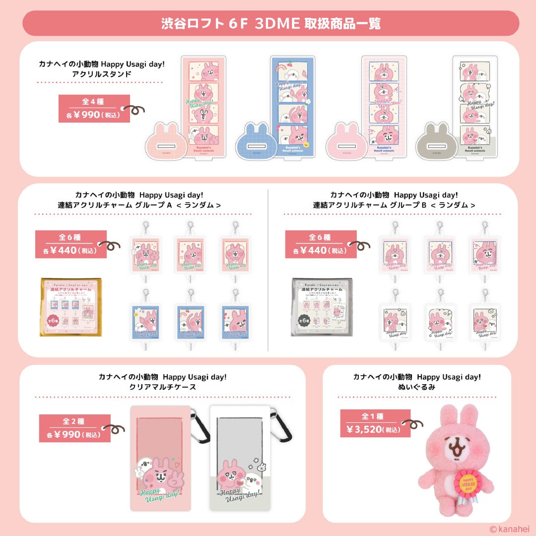 カナヘイの小動物「Happy Usagi day!」記念グッズ、渋谷ロフト6階の「3DME」エリアにて 3月末まで期間限定販売中