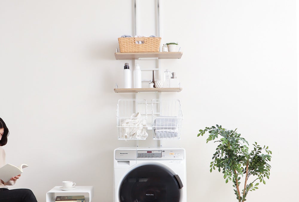 「ヤマソロ」人気の突っ張りランドリーラックEcho(エコー)にかご付きタイプが登場!