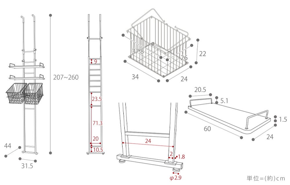 - サ イ ズ :全体(約)幅60×奥行44×高さ207~260cm