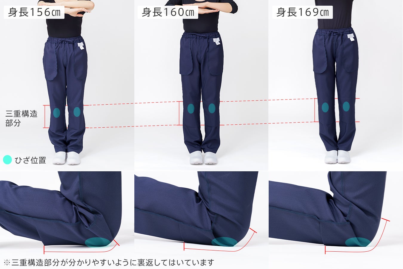 「ひざ三重パンツ」医療従事者の日常行動をヒントに開発