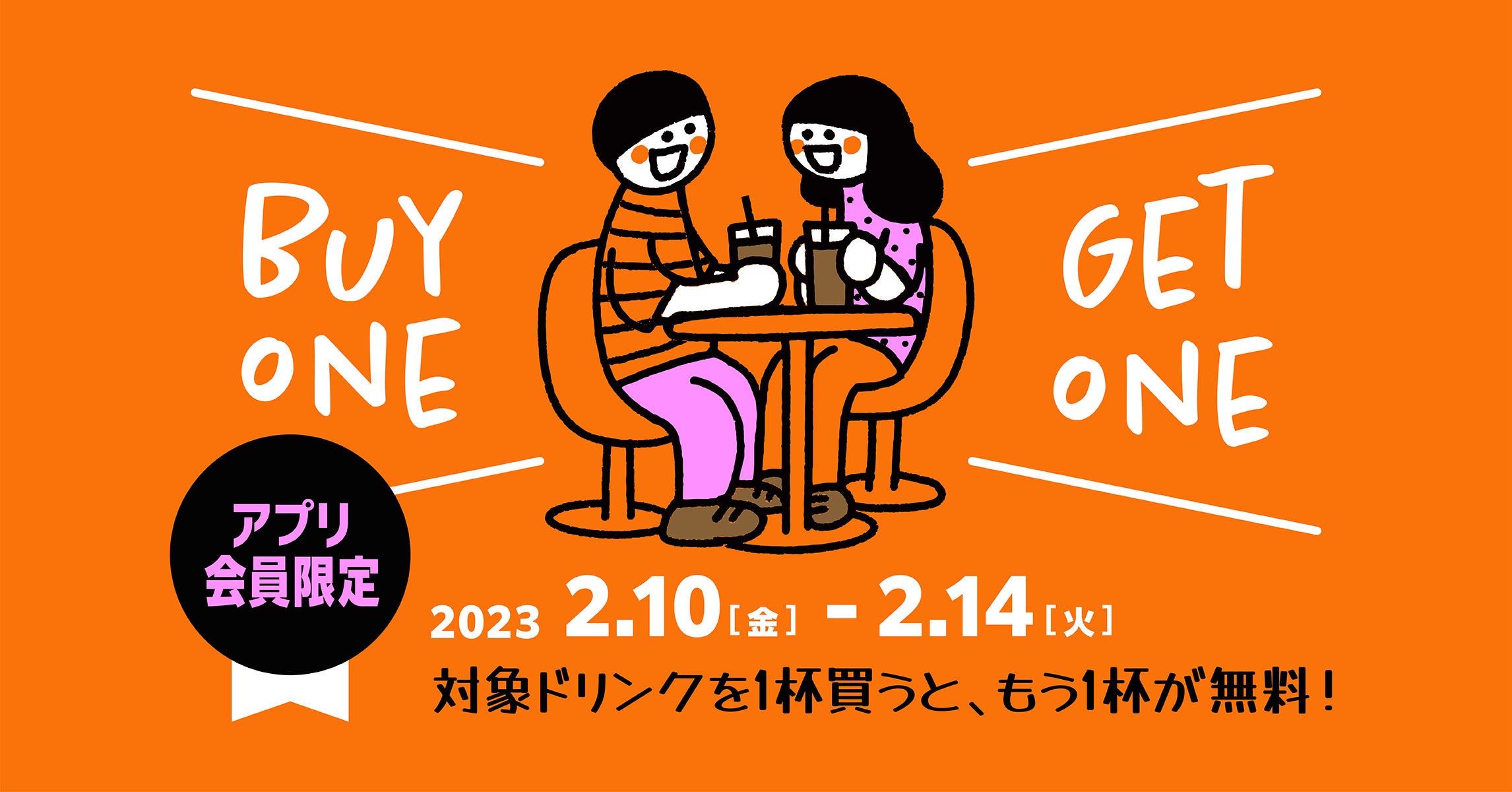 ・クーポンは「コーヒー用クーポン1枚」「ハートトッピングショコララテ/ハートトッピングショコラスムージー用1枚」の2枚が配信されます。
