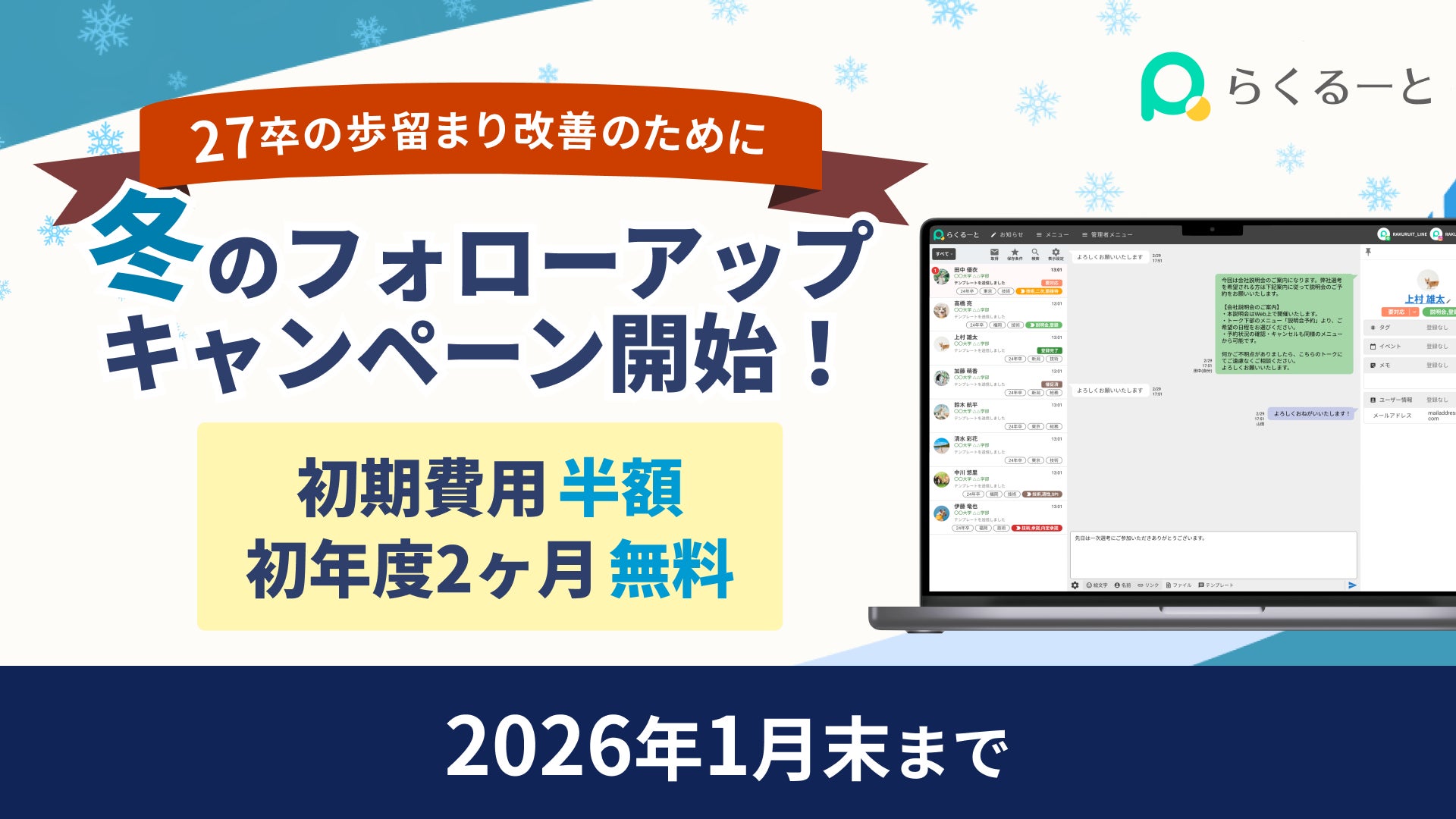 【初期費用半額&初年度2ヶ月無料】 採用管理ツール「らくるーと」、冬のフォローアップキャンペーン実施