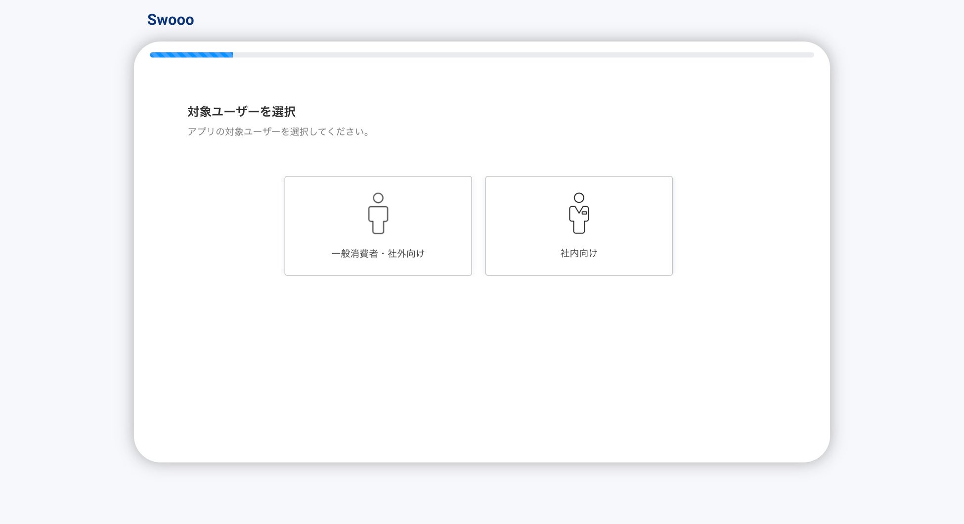 ②アプリの対象ユーザーやアプリの規模など計6つの質問に答えます