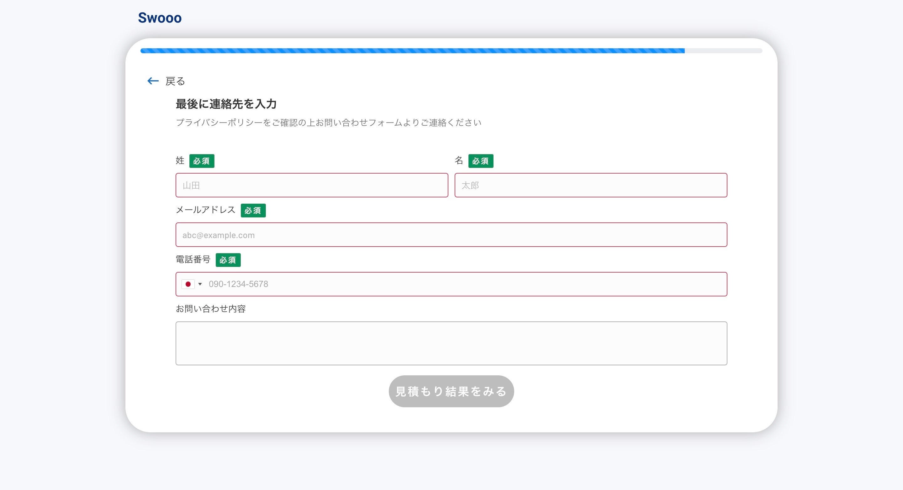 ③お名前、メールアドレス、電話番号などの連絡先情報を入力します