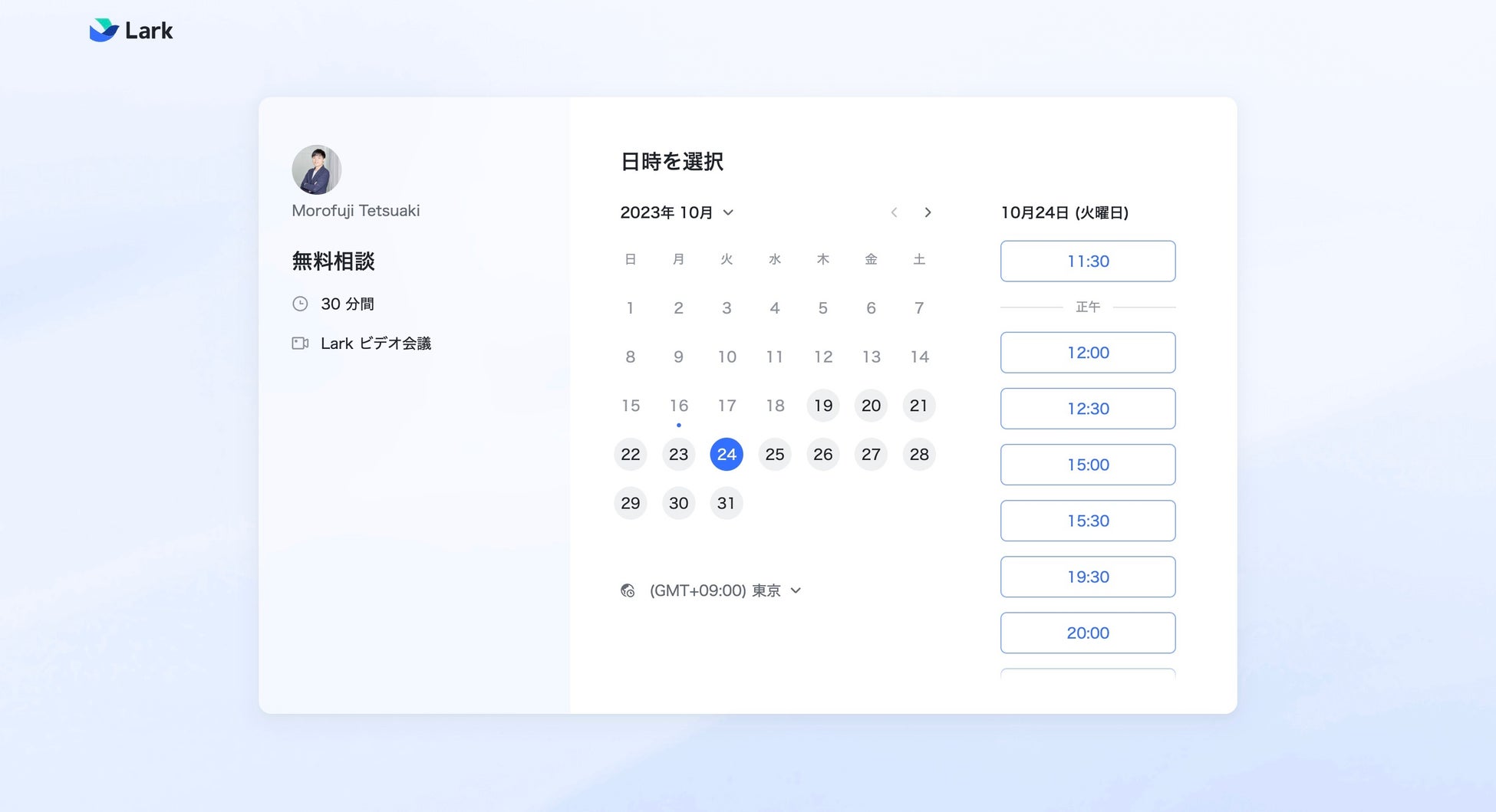 『相談予約』ボタンをクリックしてください。カレンダーから、ご希望の日時と時間を選択し、必要な情報を入力の上、予約を進めてください。
