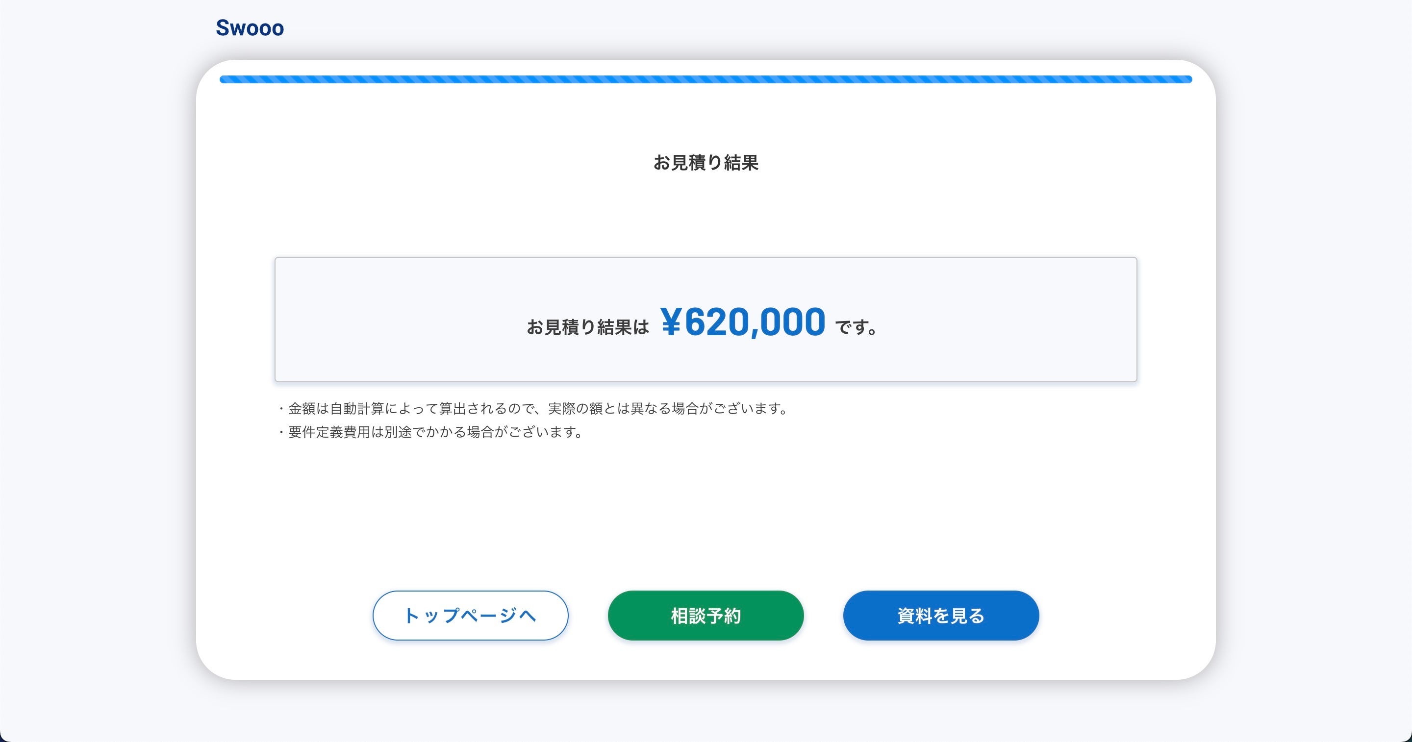また、新たに相談予約機能も追加され、見積もり結果確認後すぐに相談予約が行えます。
