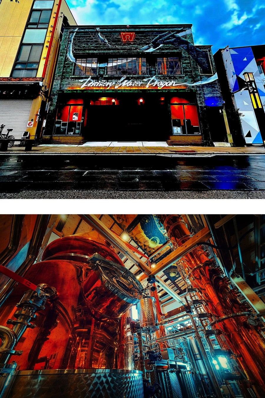 築98年、大正時代の耐震建築手法「看板建築」の技術で建てられた洋品店跡をリノベーションしてできた蒸留所です。
