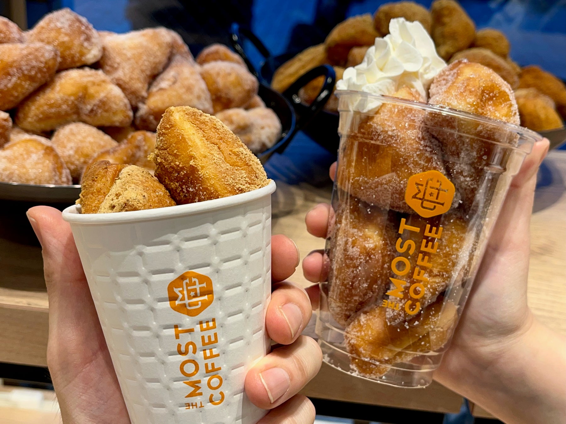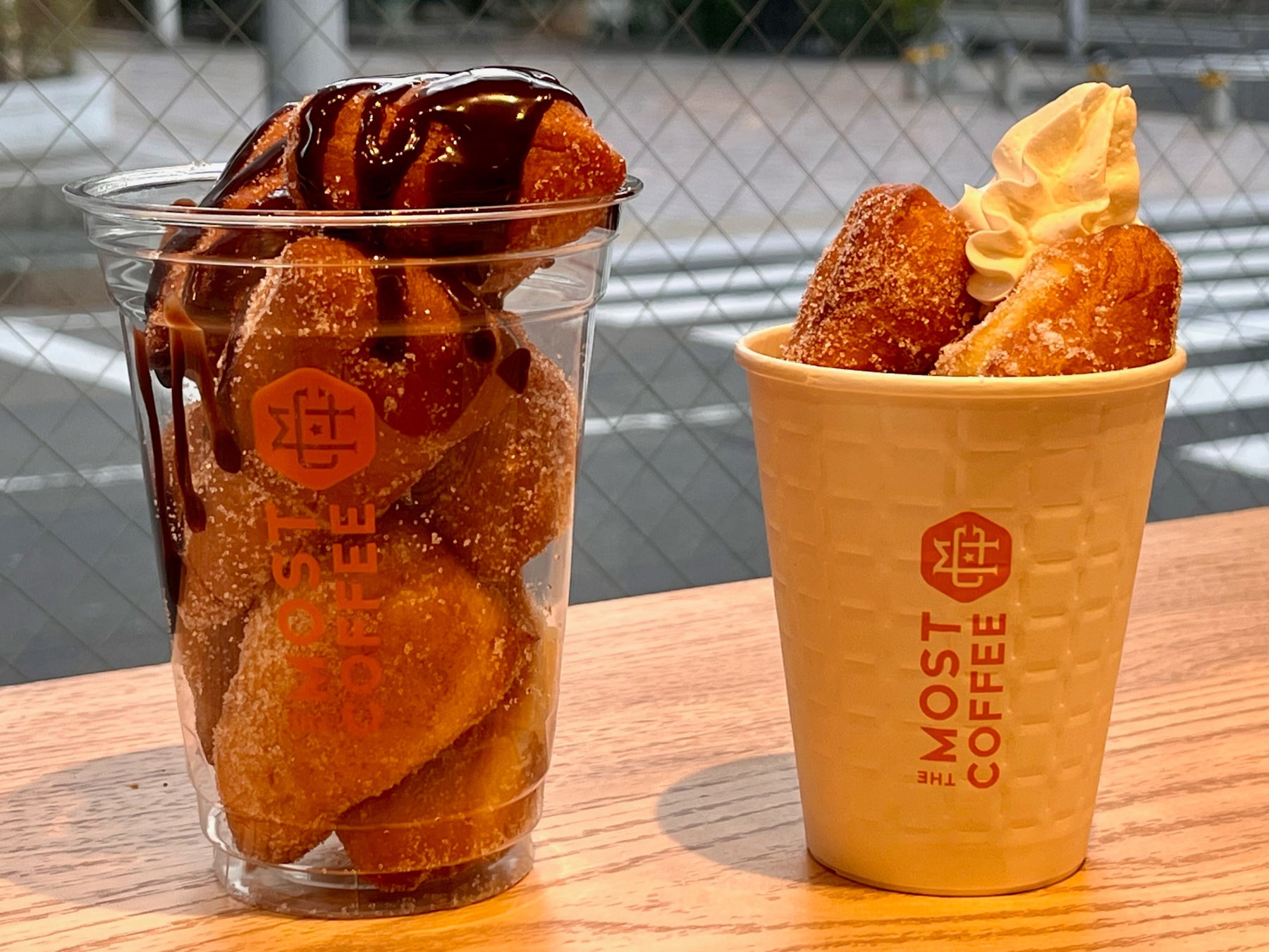 揚げたての美味しさを楽しんで頂くために、販売時間を毎日AM11:00~12:00とPM4:00~5:00に限定して販売致します。(それぞれなくなり次第終了) 店内でシェアするも良し、お子様にお土産でもテイクアウトでも良し。選んだカップに好きなだけ詰めてOK!ただし揚げたてはとても柔らかいので潰さないように注意しながら限界に挑戦してみて下さいね。また、追加でホイップクリーム、チョコレートソース、キャラメルソース、黒蜜のトッピングが可能です。(それぞれ別途+¥50税込)