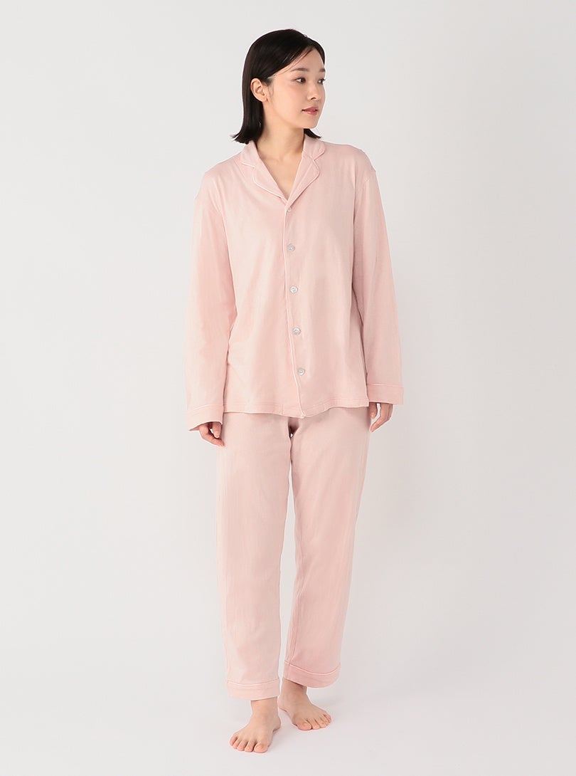 ボタンは奈良県の蝶貝ボタンを使用し、洗練されたシンプルさがくつろぎ時間を彩ります。