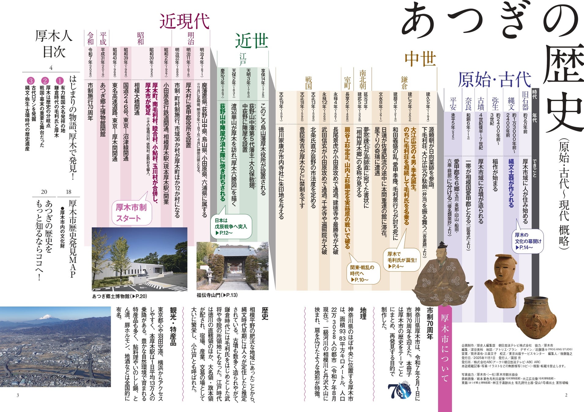 厚木市制70周年記念事業実行委員会から受託した事業の一環で、厚木市の歴史を紐解きより多くの市民に周知する目的でフリーマガジン『厚木人』を制作しました。