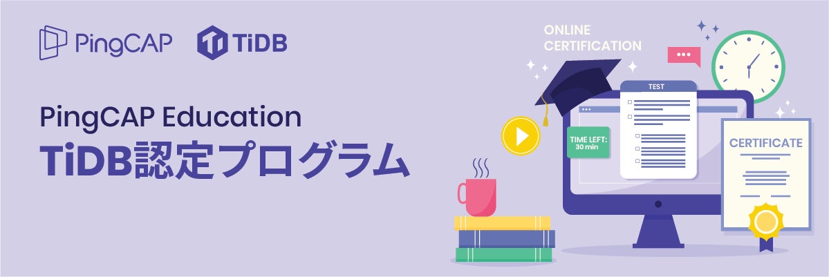 PingCAP株式会社 (本社:東京都千代田区、代表取締役社長:Eric Han、以下 PingCAP) は、NewSQLデータベース「TiDB」の専門知識を持つ人材の育成およびエコシステム拡大を目的とした「TiDB認定プログラム ( https://pingcap.co.jp/certification/ ) 」の提供を開始することをお知らせいたします。