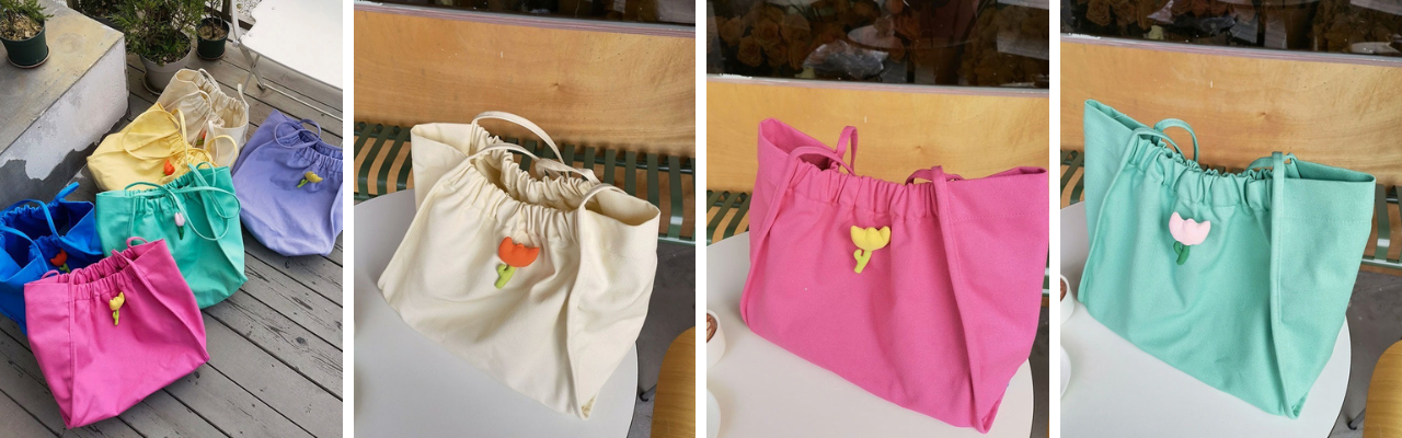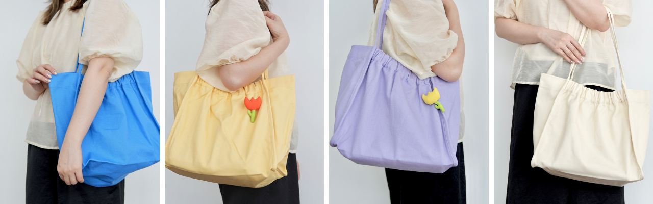 ④「どこへでも一緒に」6色展開帆布トート 各 3,200円(税込)