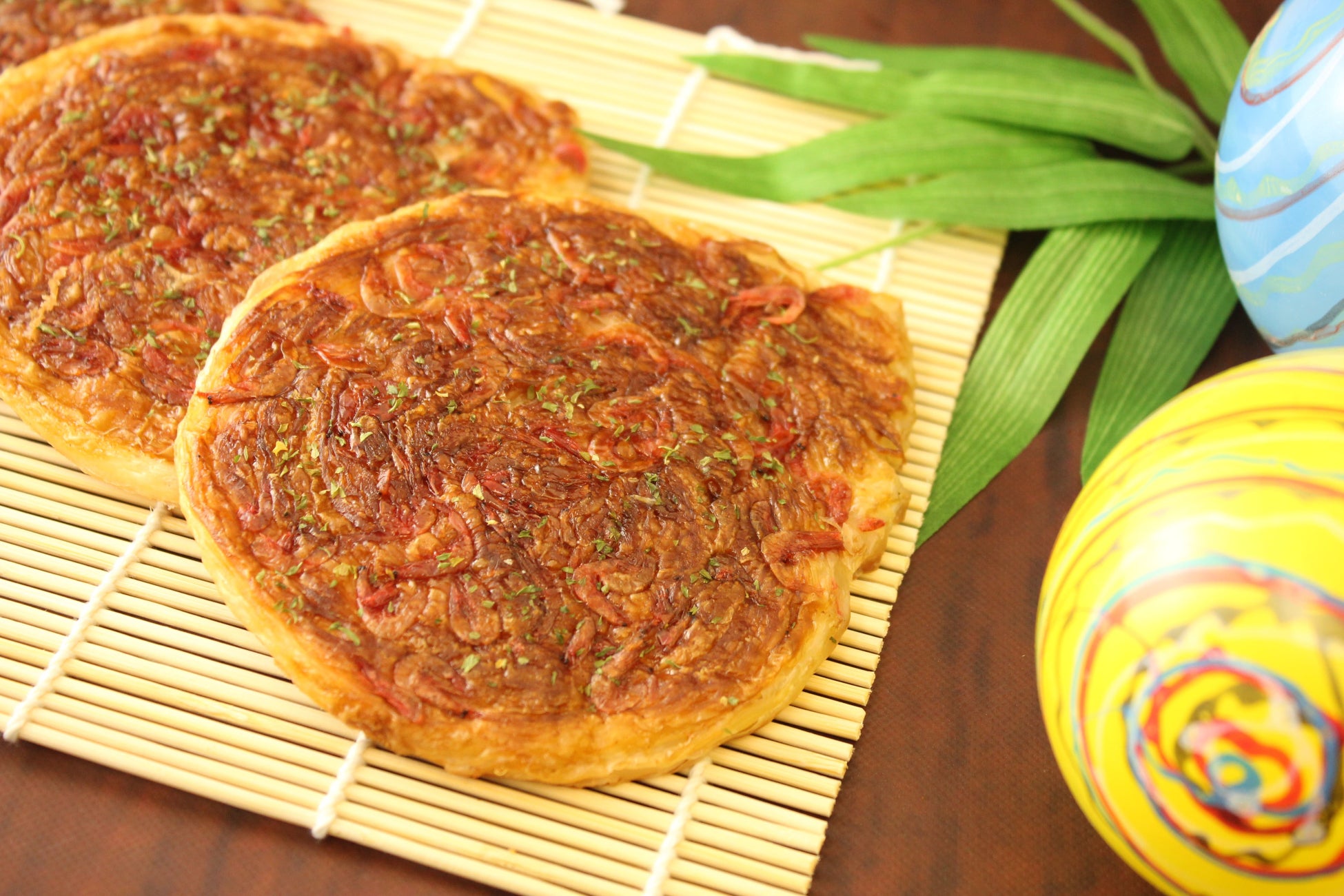 デニッシュ生地に赤小エビをトッピングして焼き上げ、仕上げにソースをしっかりと。エビの風味が香る屋台のえびせんをイメージして、サクッと軽い食感に仕上げました。