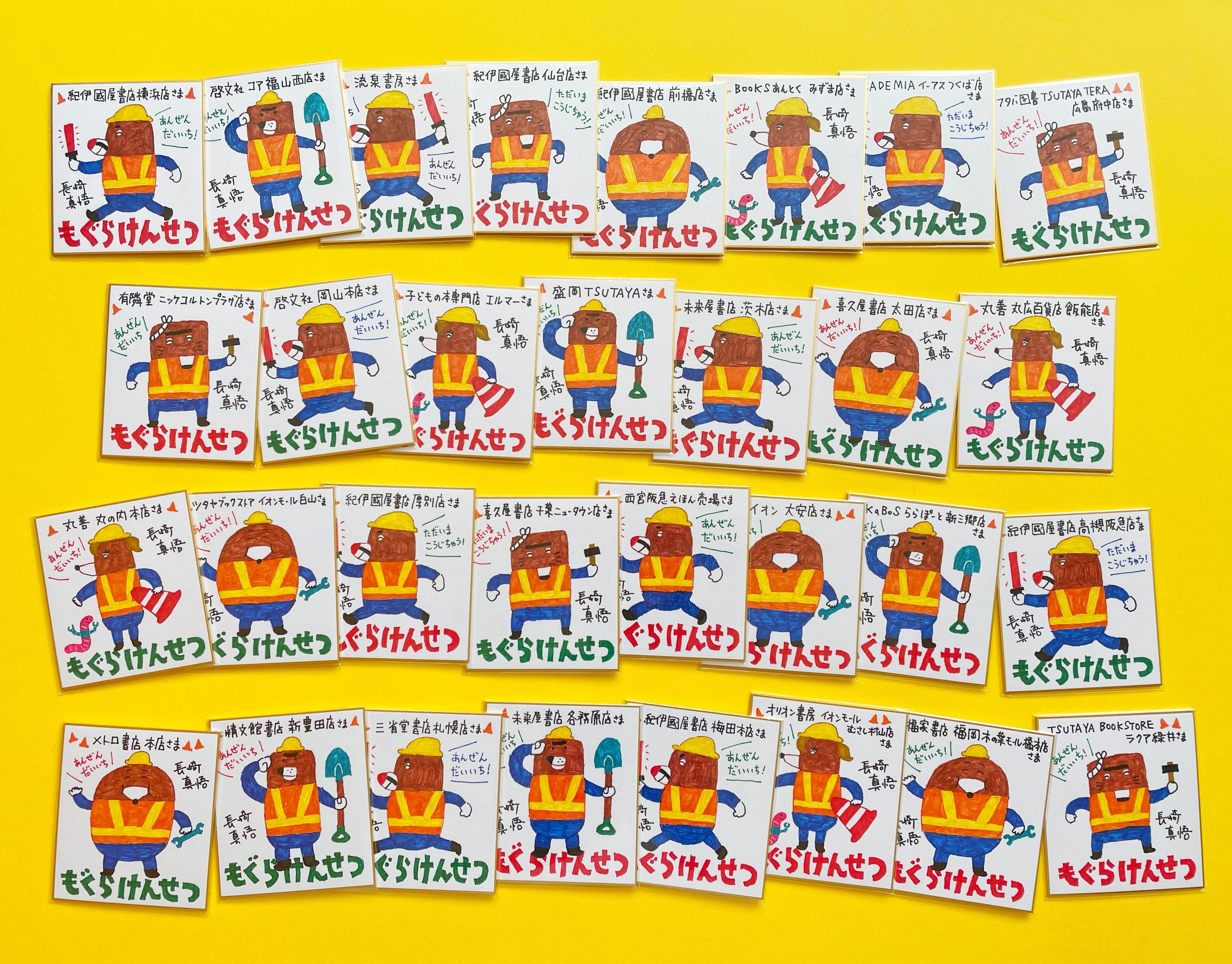 全国30書店様には、作者の長崎真悟さん描きおろしのミニ色紙をお届けします! お近くの書店へ、もぐらたちに会いにお出かけください。
