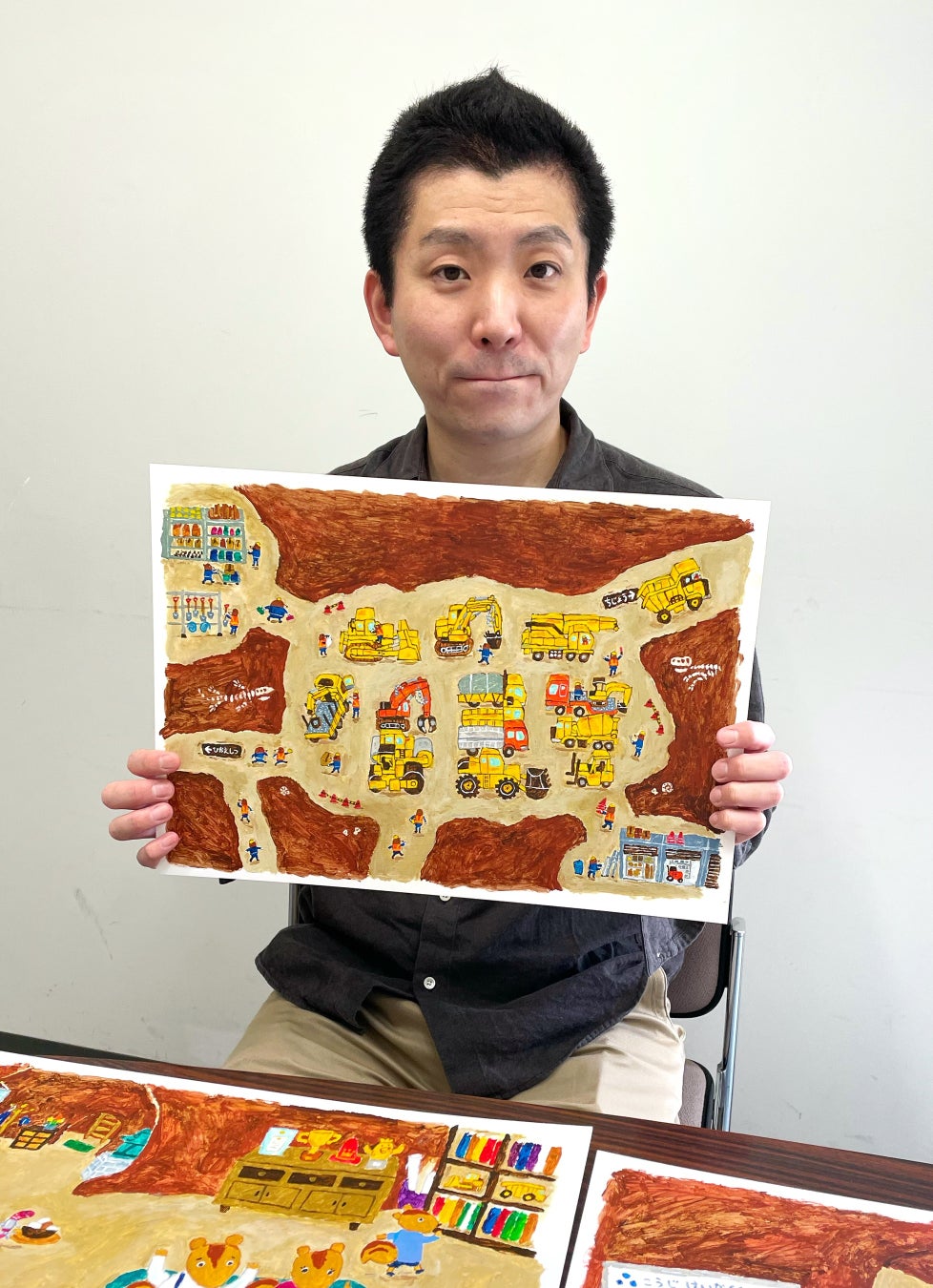●迫力の重機は、細かい部分まで正確に描かれているのに、魅力的な生き物のようにも見えてくるから不思議!