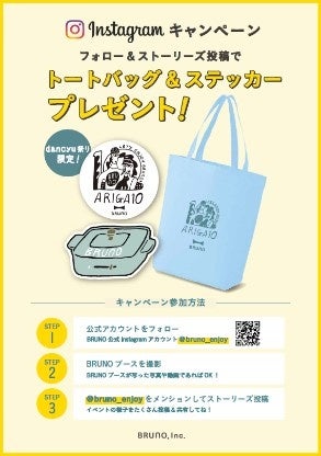 BRUNOの公式Instagramアカウント(@bruno_enjoy)をフォローし、BRUNOブースの様子をストーリーズ投稿すると、オリジナルトートバッグやステッカーがもらえるキャンペーンを実施。