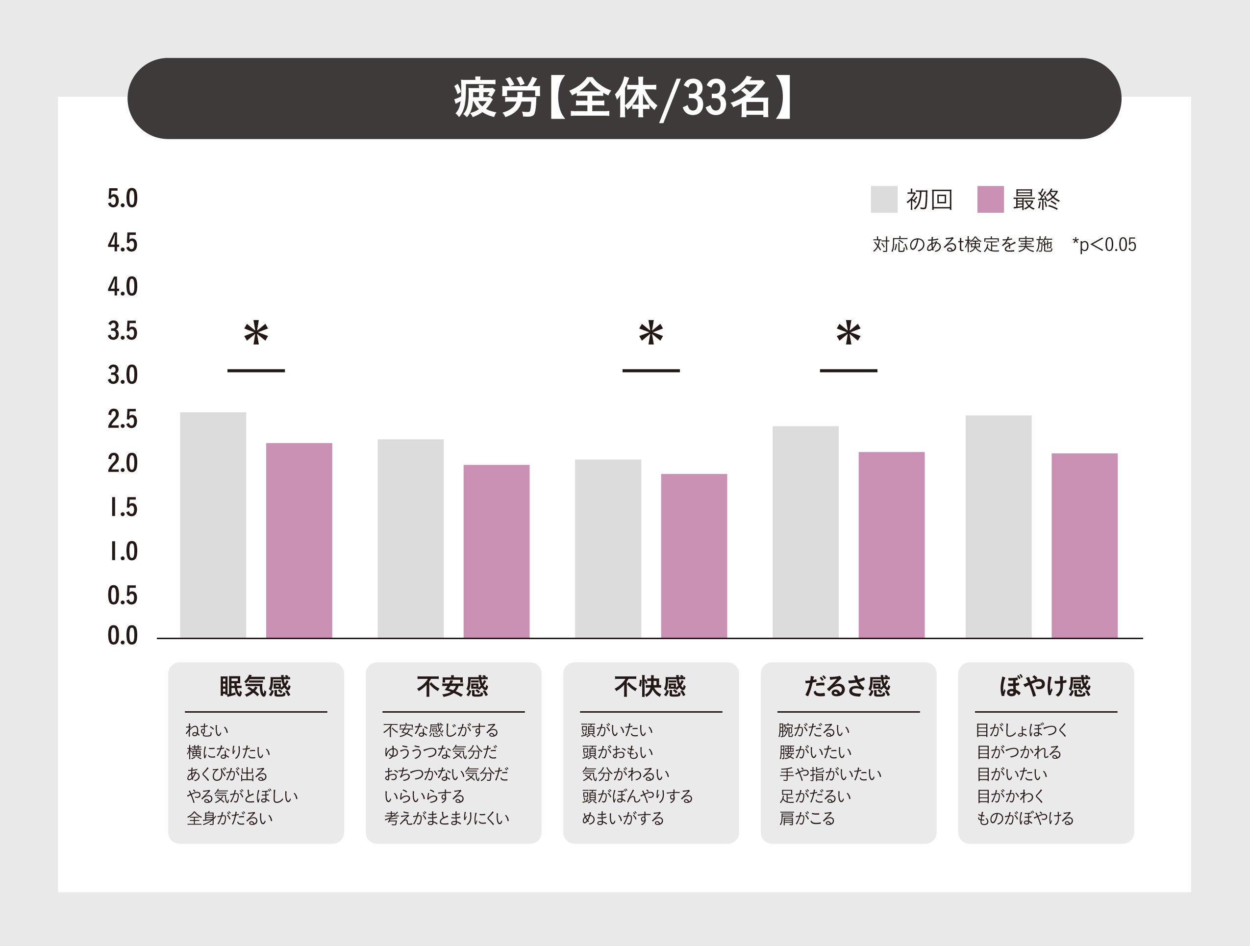 1) 全体33名では5つの評価群のうち3群が有意に変化!