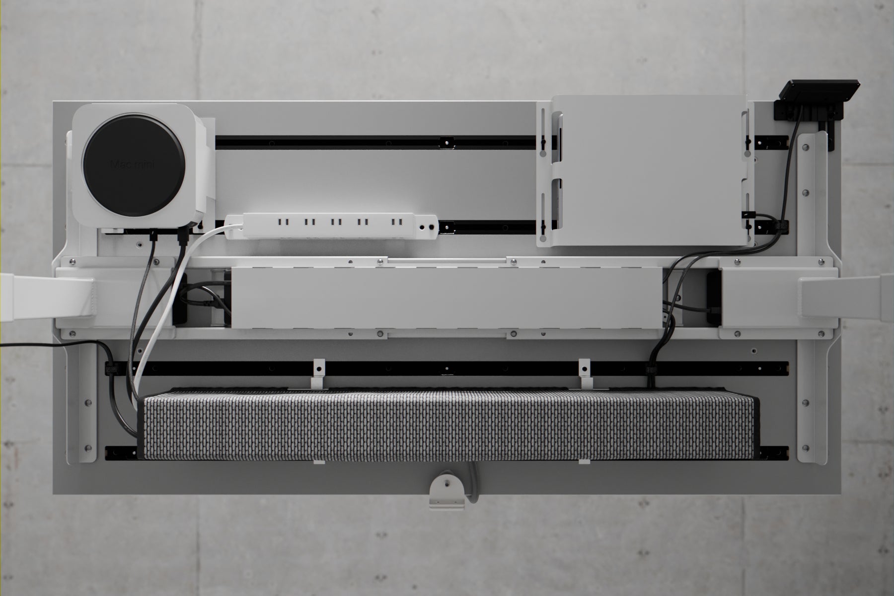 専用のモジュールは、デスクトップ/ラップトップPCやタブレットなどはもちろん、書類や小物、ヘッドフォン、ゲーム機などにも対応。ケーブルをきれいに配線できるアダプタやホルダーもあり、机の表も裏も利便性が高くスッキリした環境を構築できます。(特許取得済)