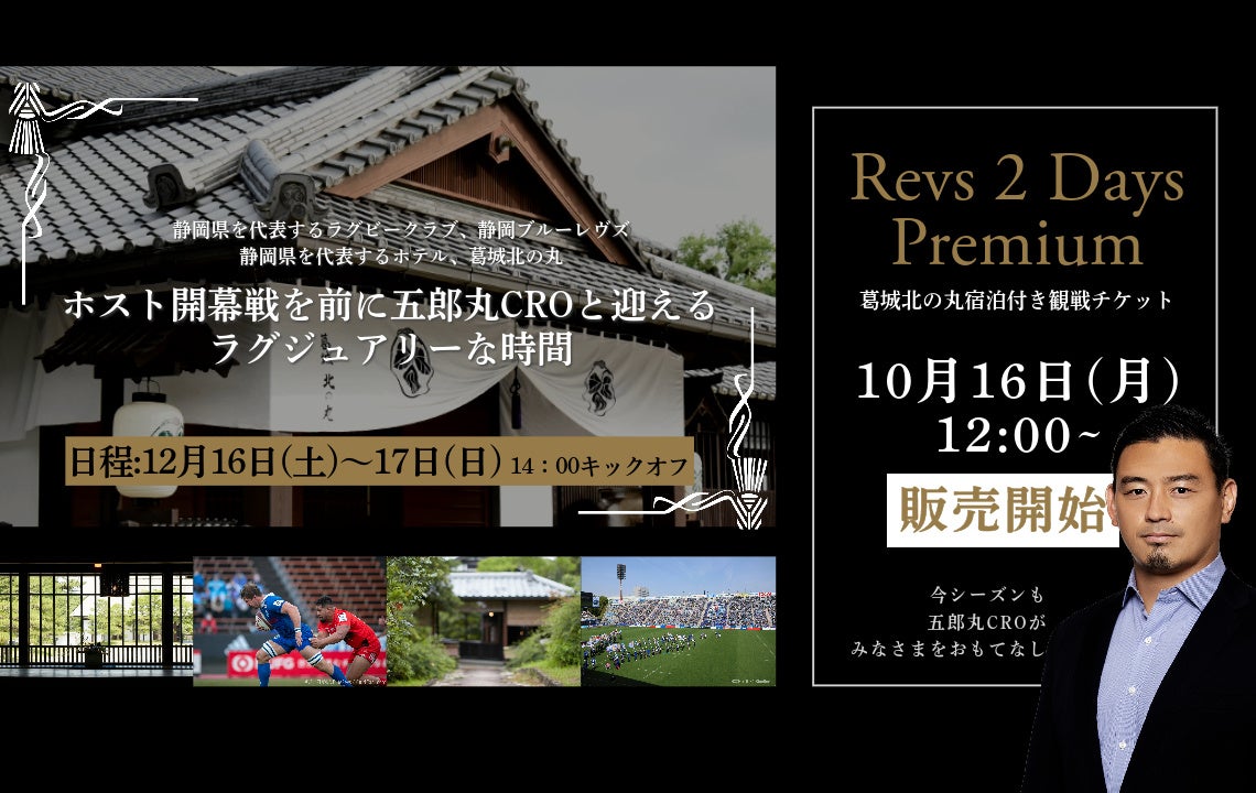 “NTT JAPAN RUGBY LEAGUE ONE 2023-24” ホスト開幕戦の企画チケットとして、「Revs 2Days Premium」葛城北の丸宿泊付き観戦チケットを発売しますのでお知らせいたします。