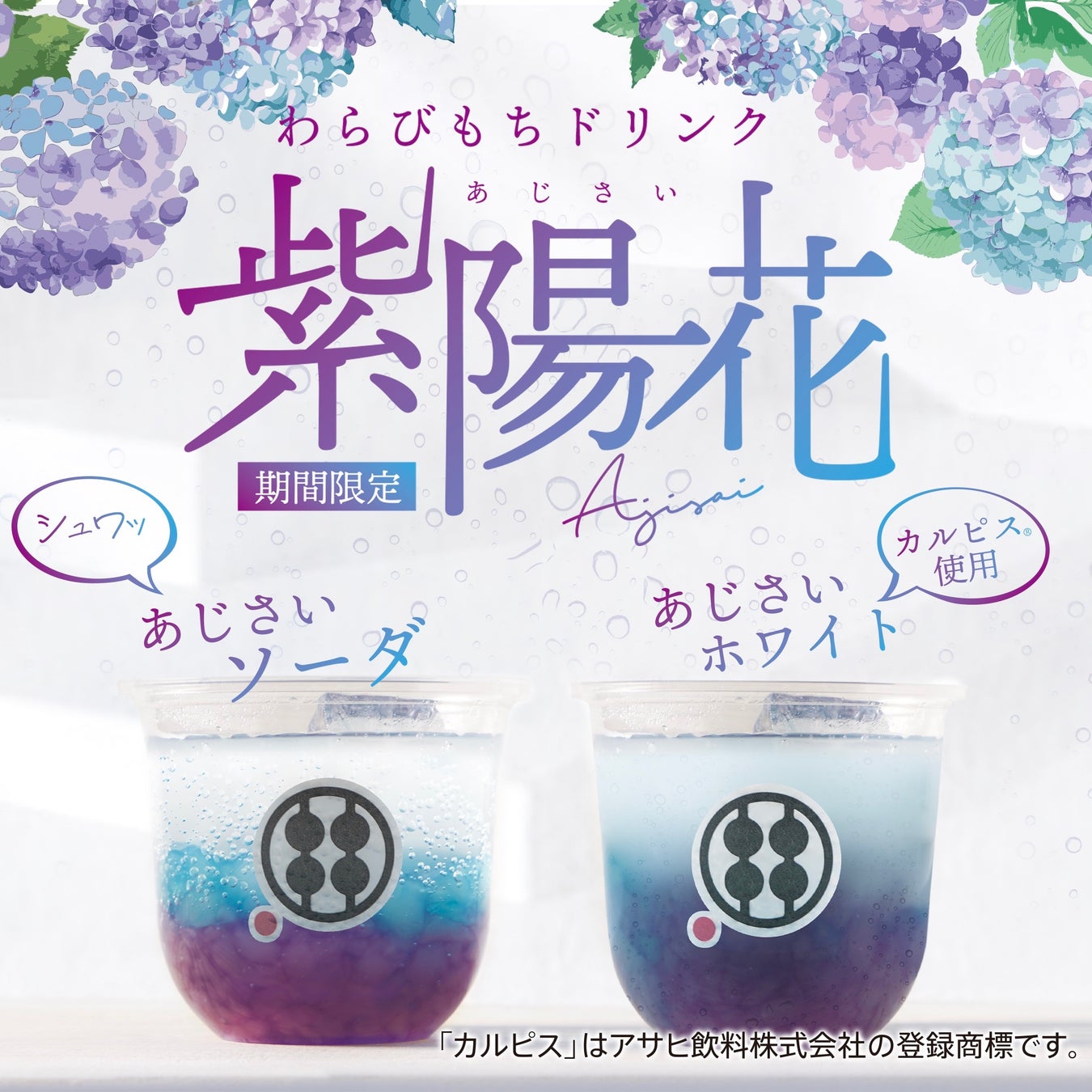 甘味処鎌倉 期間限定新メニュー『わらびもちドリンク あじさい ソーダ/ホワイト』