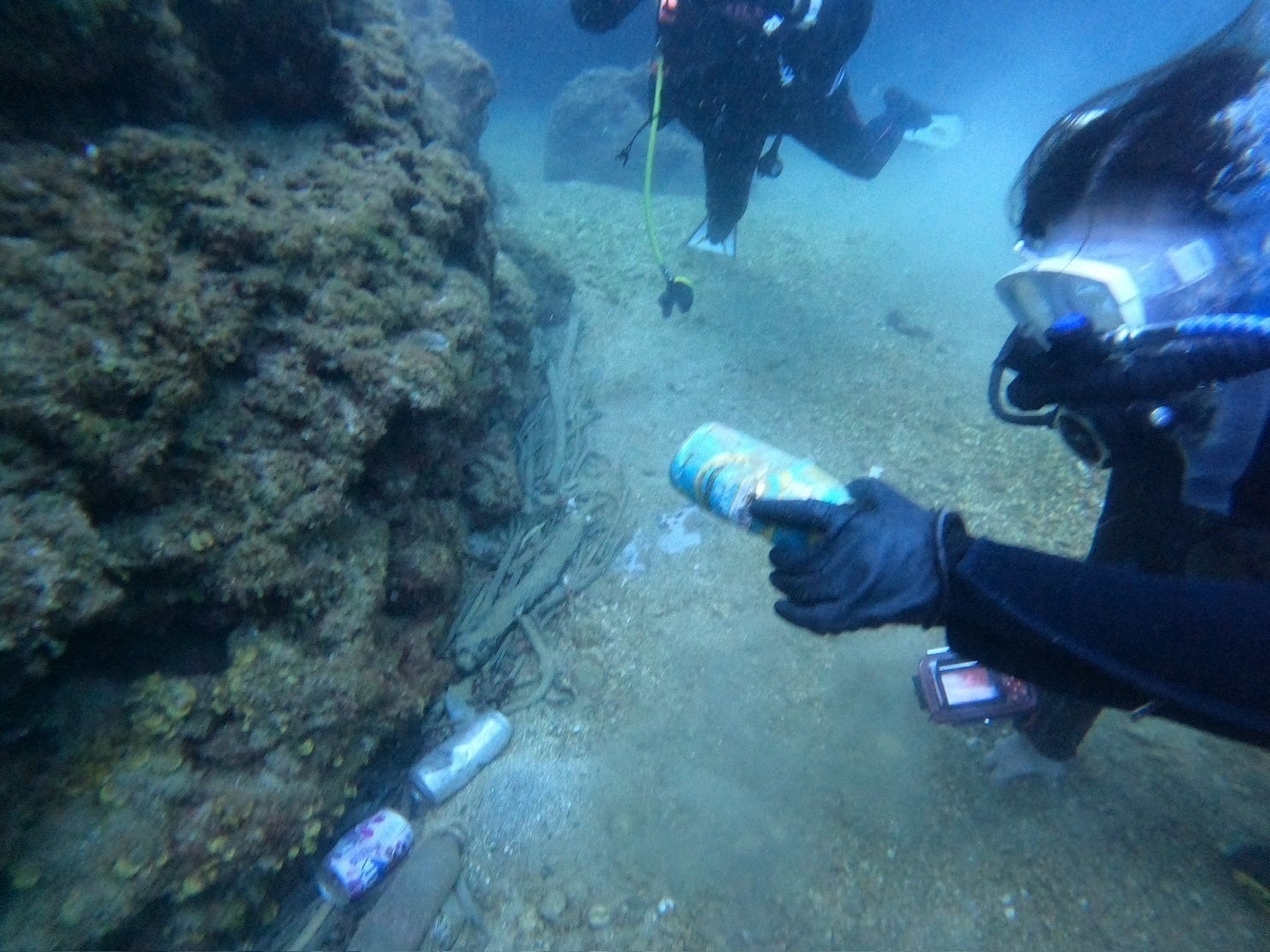 『水中ゴミ拾い専門店 Dr.blue』代表でもある東真七水さんと一緒に、1.8kgのゴミを収集し、沖縄の海の美化に貢献しました。