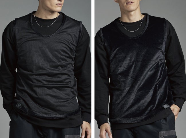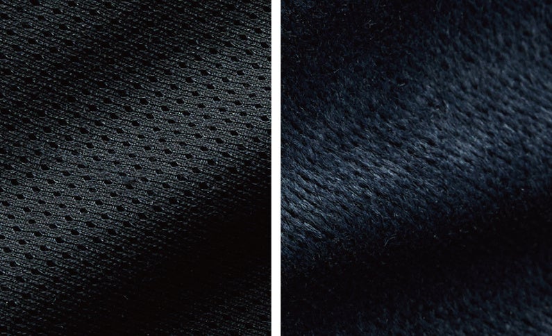 毛足の長い起毛により、保温性を高めつつ、メッシュ構造のファブリックが 「ムレ」を放出。