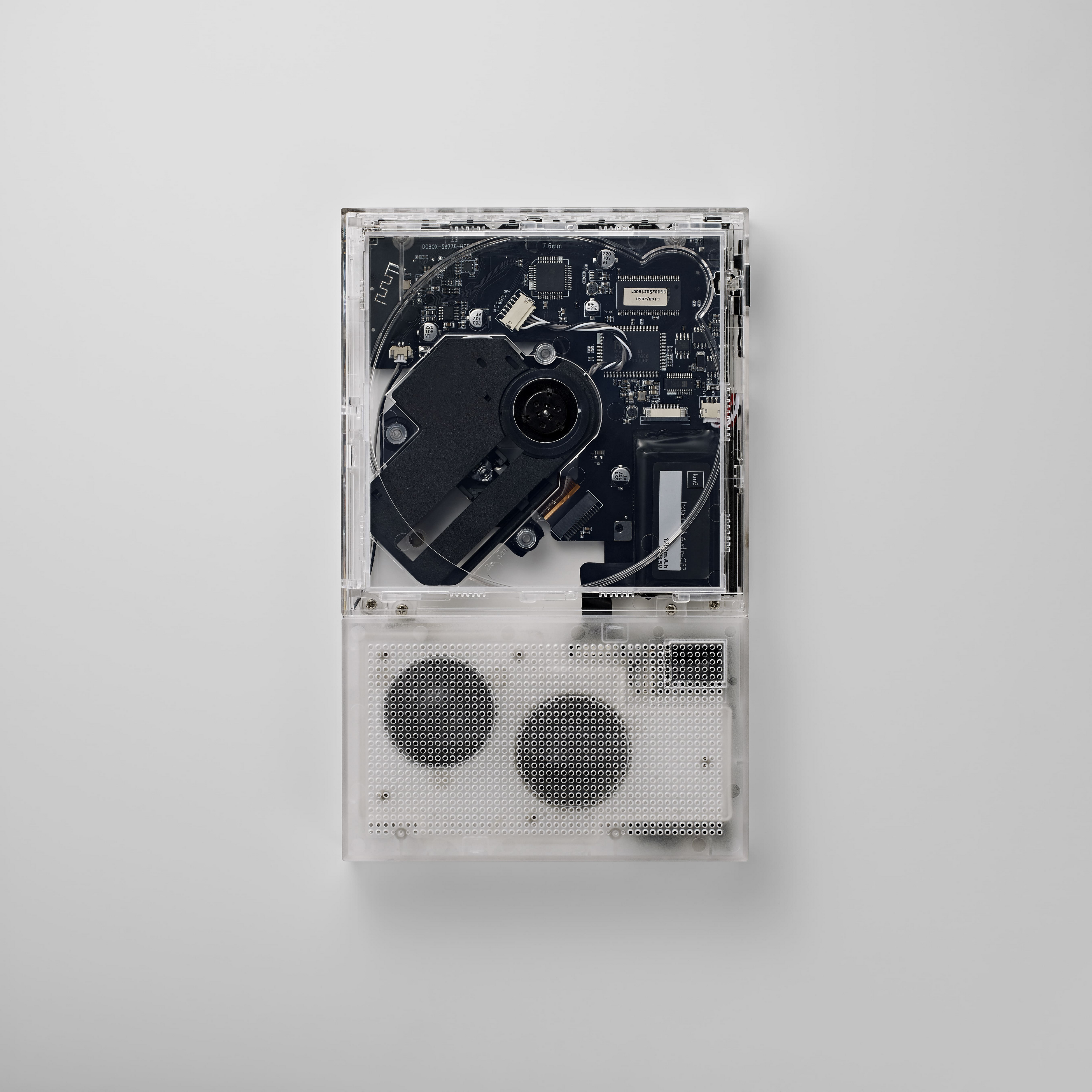 スピーカー内蔵モデルCp2に、待望の「クリアモデル」が登場。内部の基盤やメカニズムが美しく透けて見えるデザインは、それ自体がアートピースに。