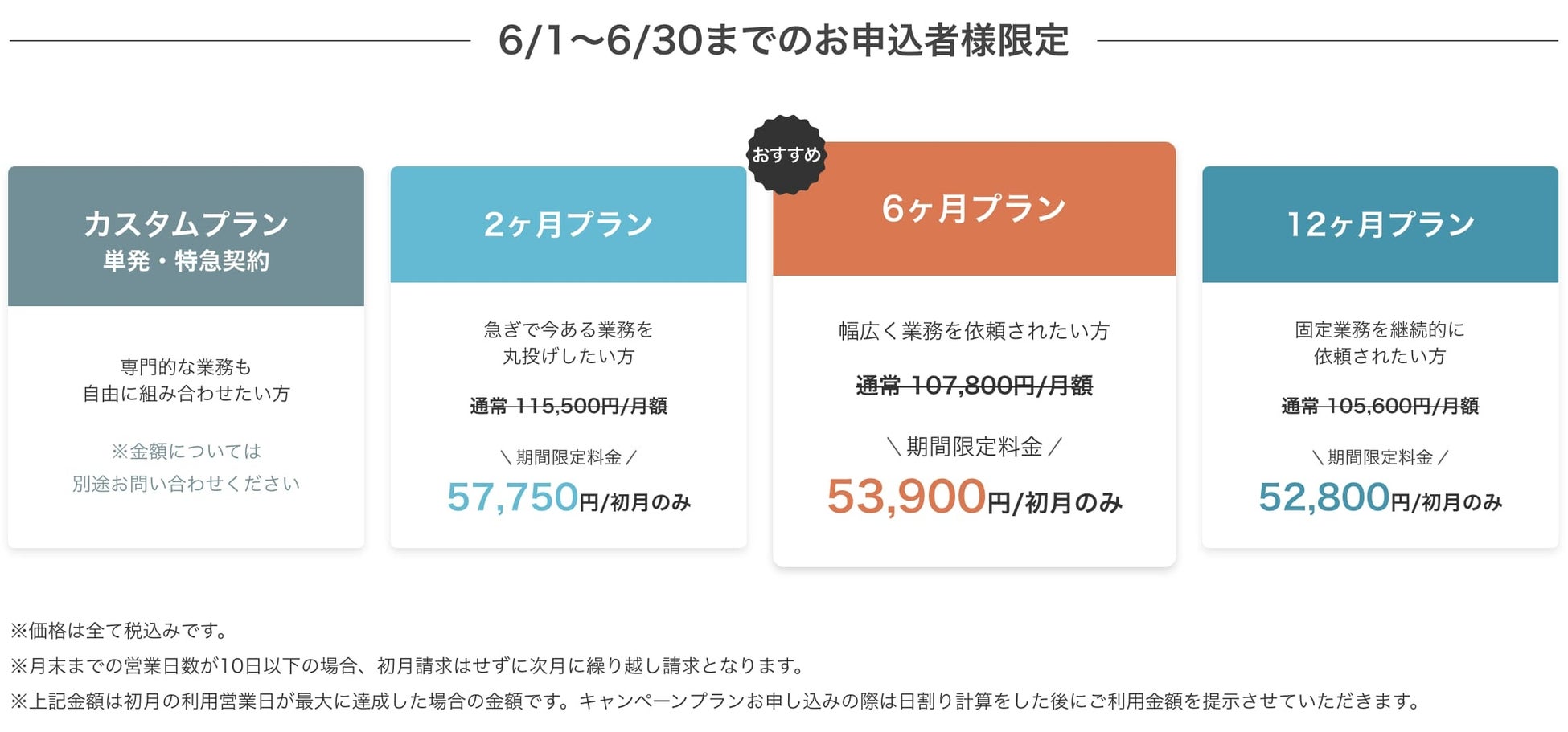 通常 107,800円/月額 → 期間限定料金 53,900円/初月のみ