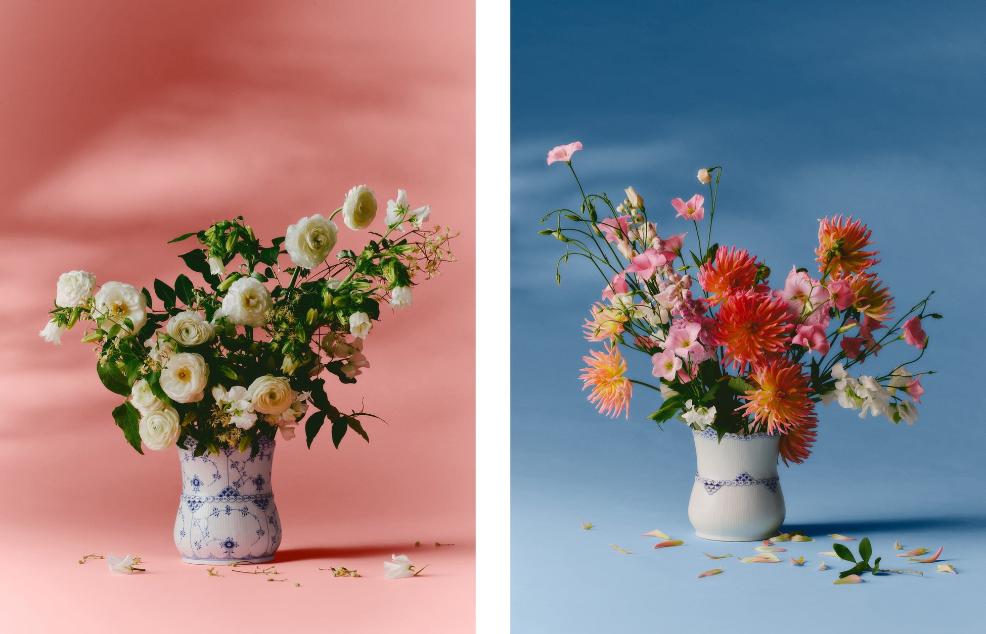 繊細な一輪から 伸びやかに咲き誇る大ぶりな花束まで、あらゆるフラワーアレンジメントが、ロイヤル コペンハーゲンのクラフツマンシップが息づくハンドペイントのベースとともに、美しい物語として紡がれます。