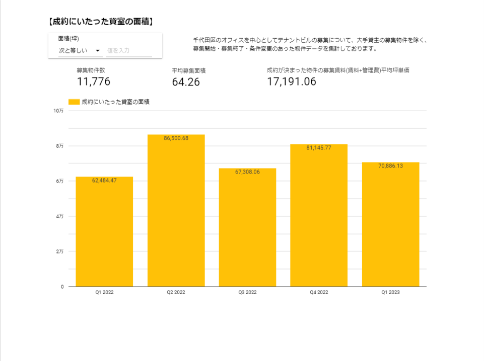 2023年第1四半期の成約面積は、70,886坪と前第1四半期を上回る状況です。