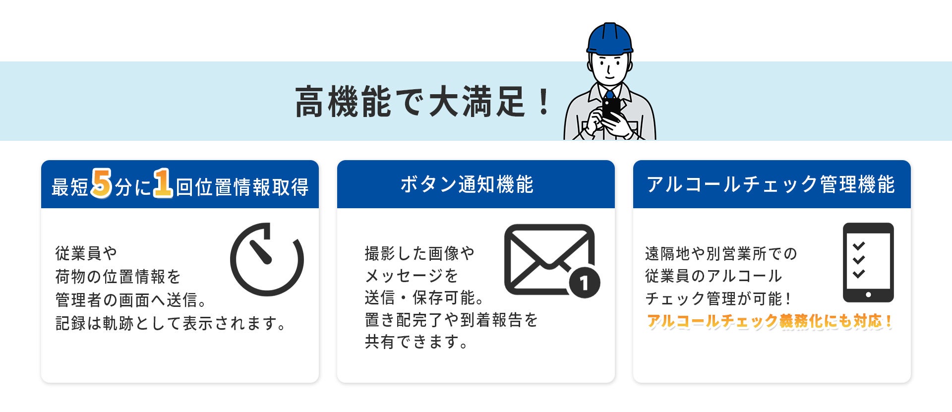 また、2023年12月には白ナンバーにも義務化されたアルコールチェック管理に対応し、2024年11月には自動で従業員の位置を取得する『定期位置情報通知機能』を追加しました。