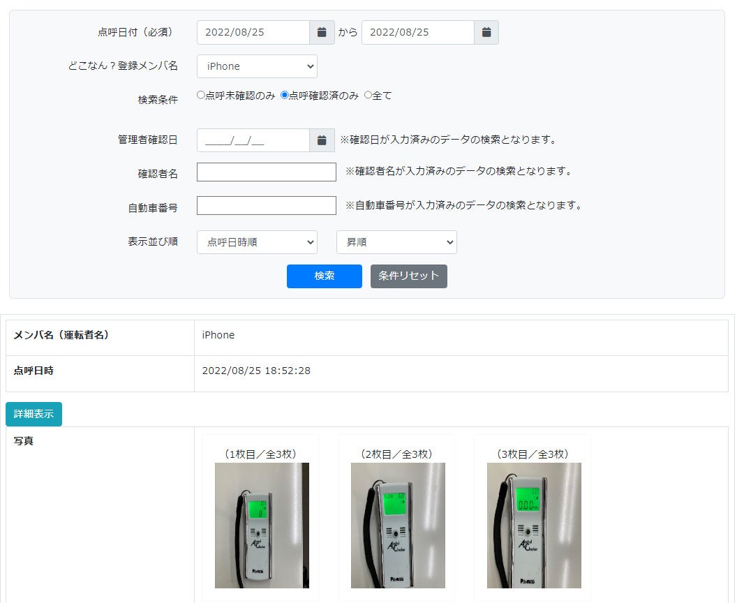 ※アプリ自体にアルコール検知機能はありませんので、別途アルコール検知器機のご準備が必要です。