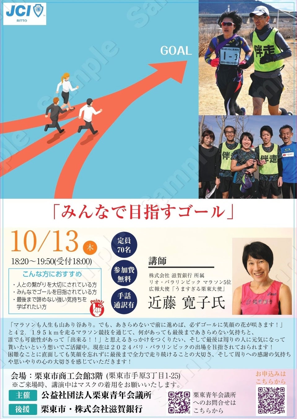 《パラリンピック出場経験を持つマラソンランナーでもあり、うますぎる栗東大使としてもご活躍される近藤寛子氏を講師としてお迎えして、講演会を実施いたします。》