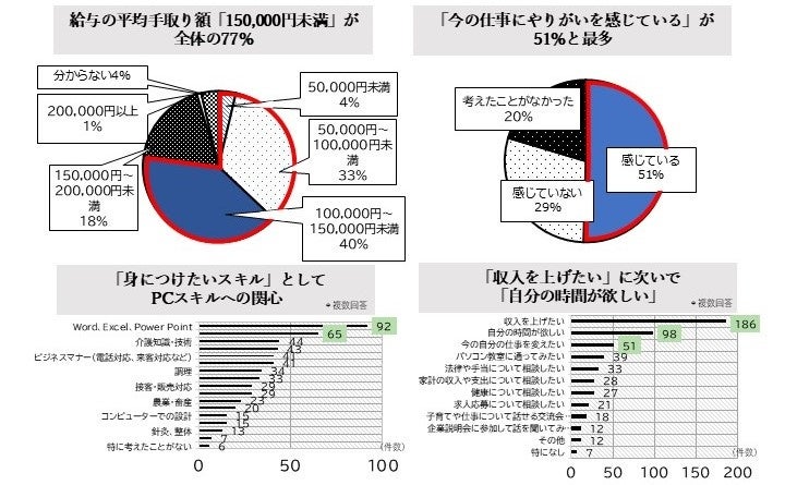 「融通利く職場で助かるが、最低賃金のパート勤めが続き、生活が苦しい」といった声が数多く寄せられました。