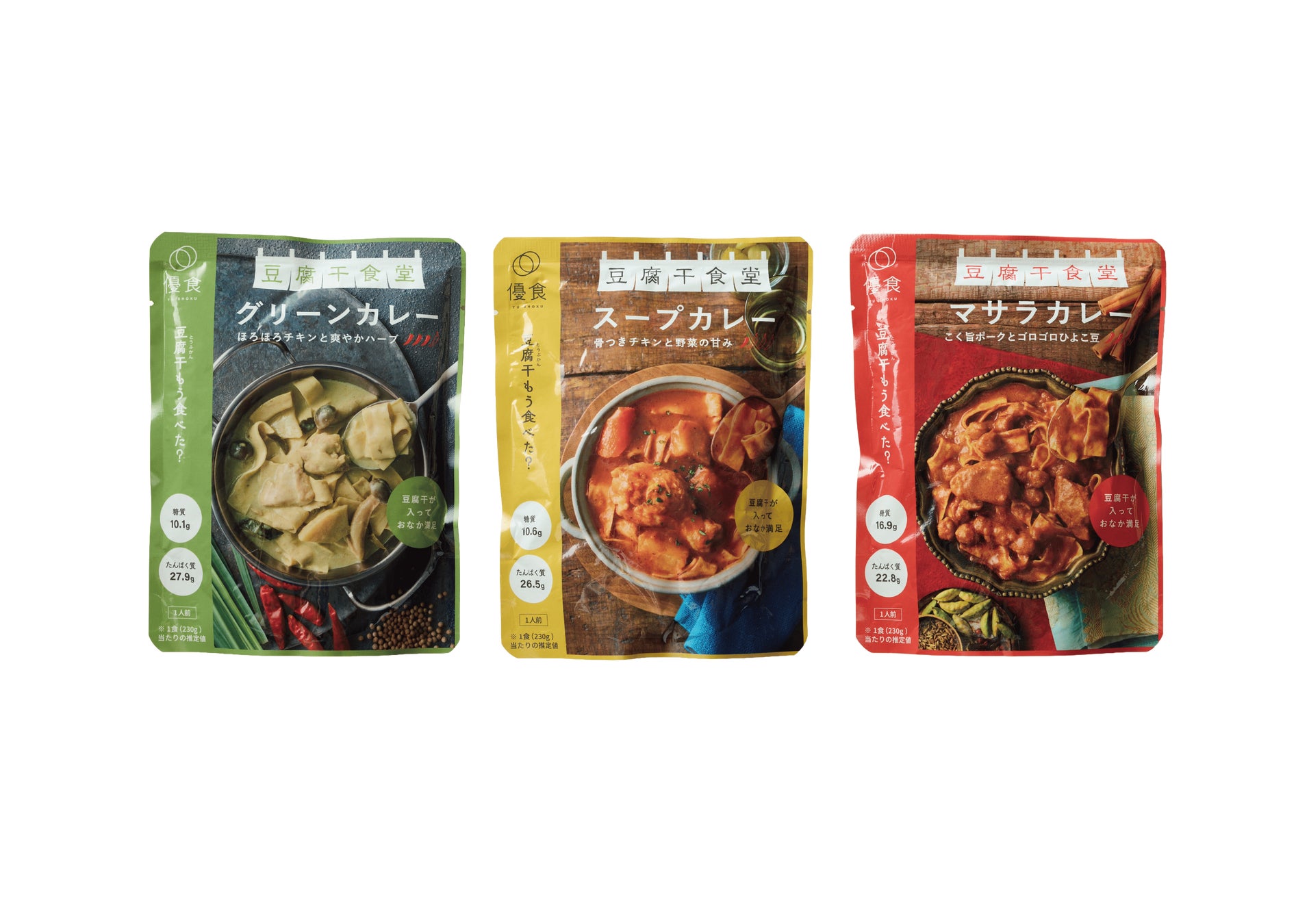 本展示会では、昨年に引き続き高たんぱく質・低糖質な中華圏の伝統食材「豆腐干(とうふかん)」を使った各種メニュー提案に加え、優食の新ブランド『豆腐干食堂』から新商品・カレー3種を11月26日(水)に発売。会場ブースにて初お披露目、試食提供、特別価格での販売を行います。