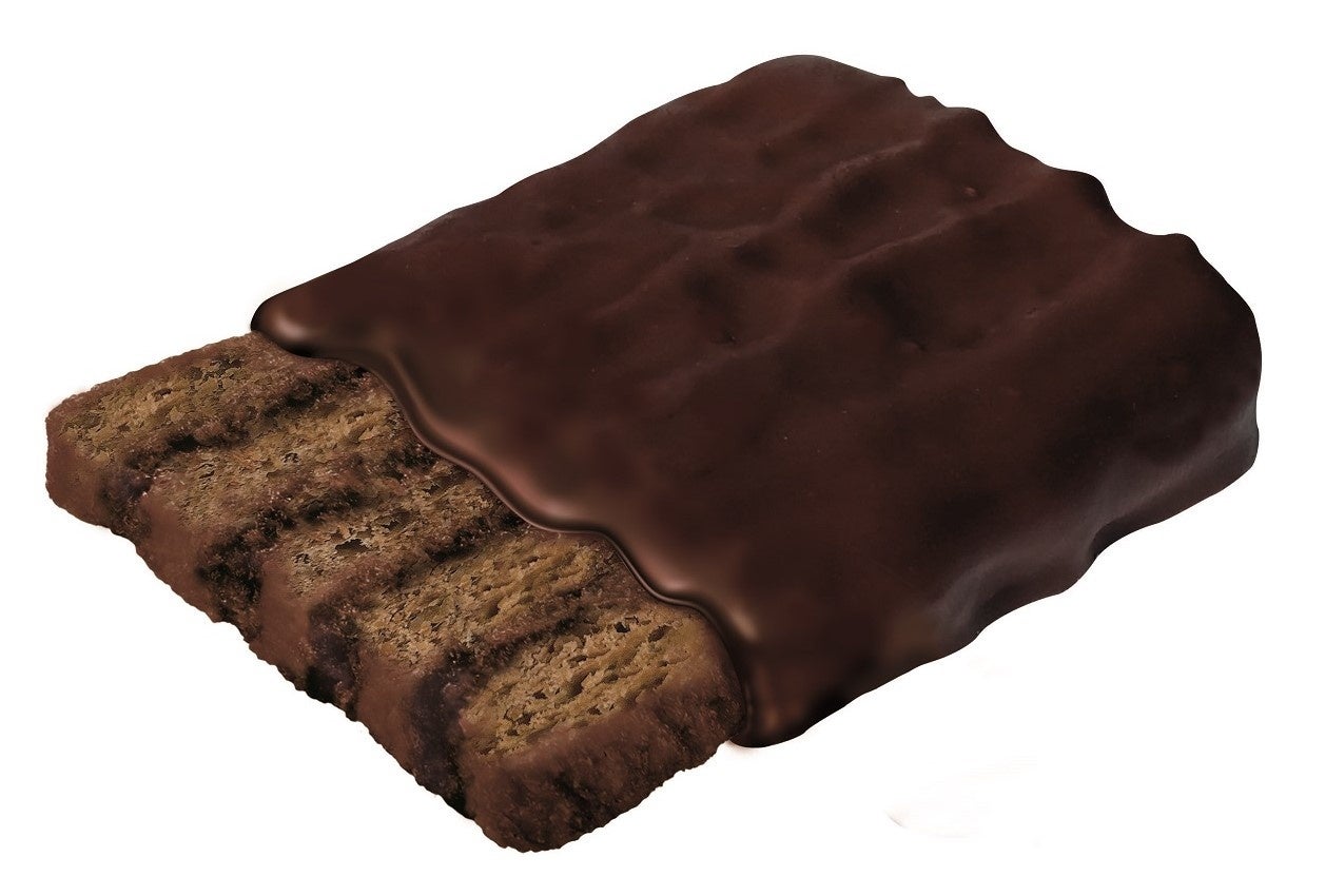 ・サクサクのチョコパイ生地とくちどけの良いチョコクッキー生地を重ね合わせて焼き上げ、ミルクチョコでフルコーティング