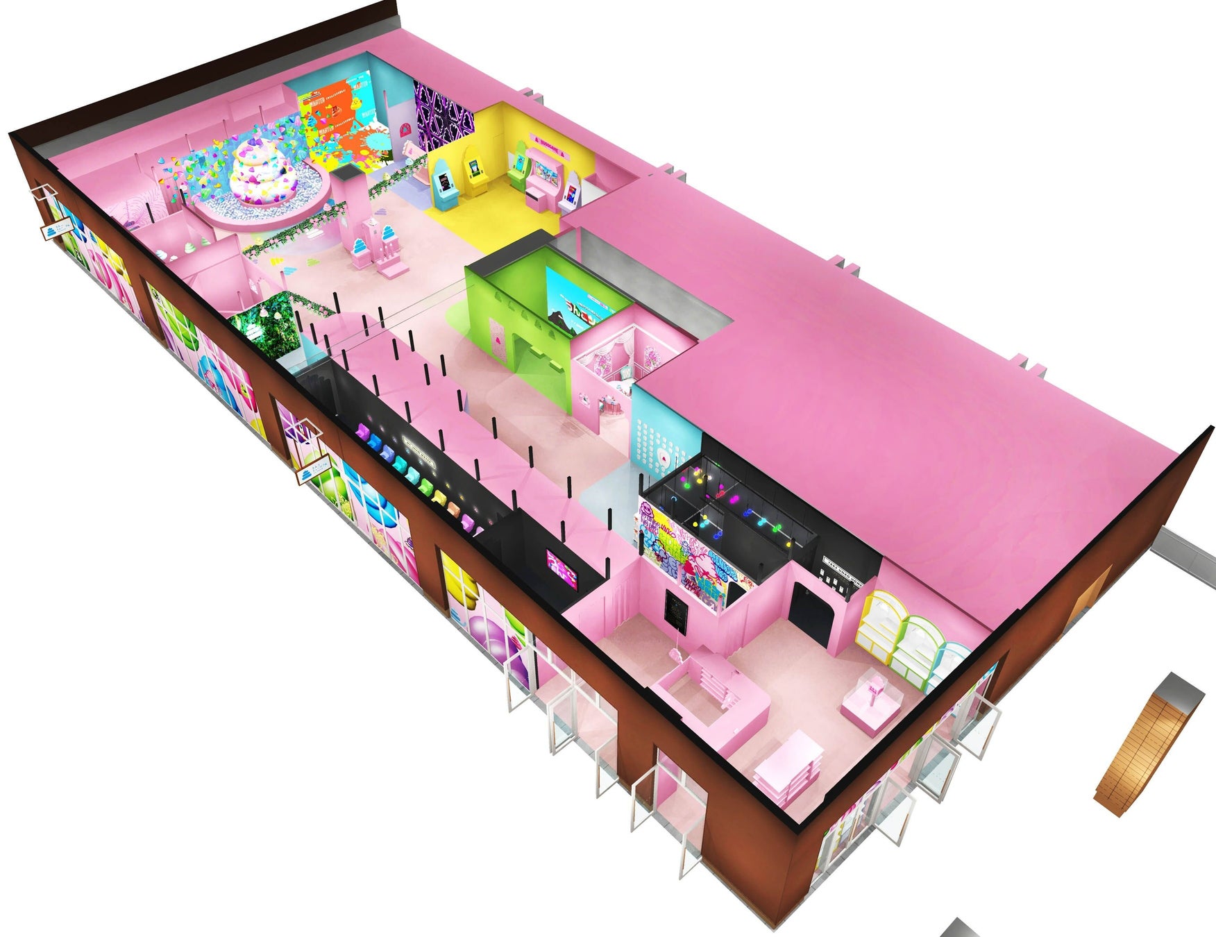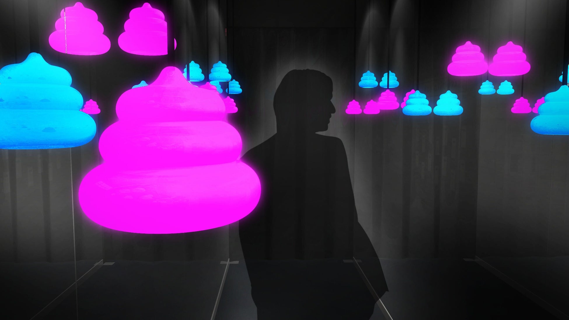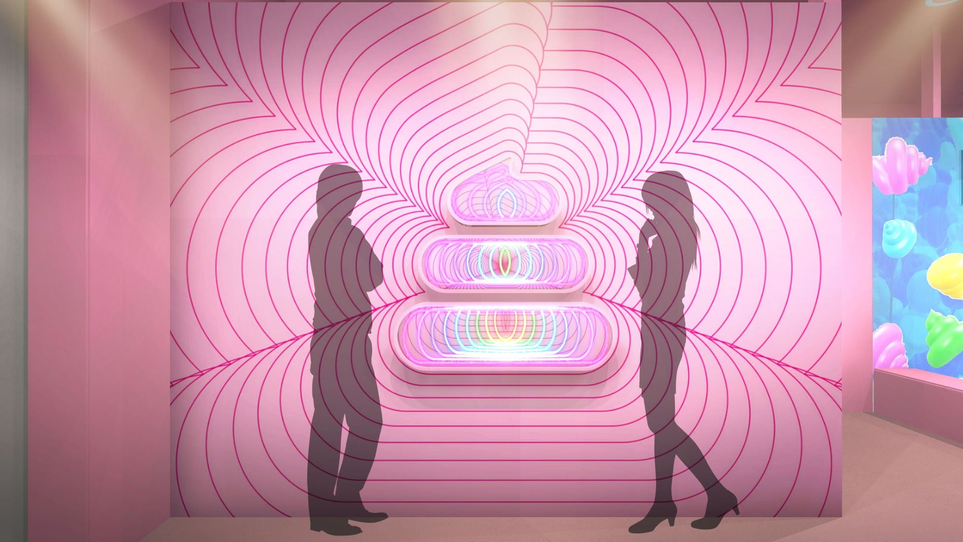 合わせ鏡の中に、パステルカラーのうんこが大量に飛び交うフォトスポットです。