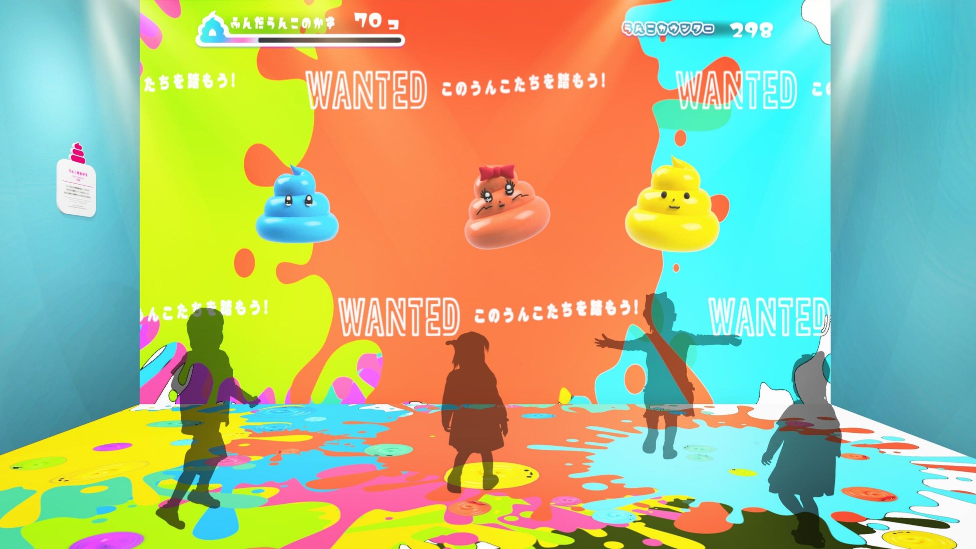 地面に映し出されたカラフルなうんこたちを追いかけ、思いきり踏んづける体感ゲームです。