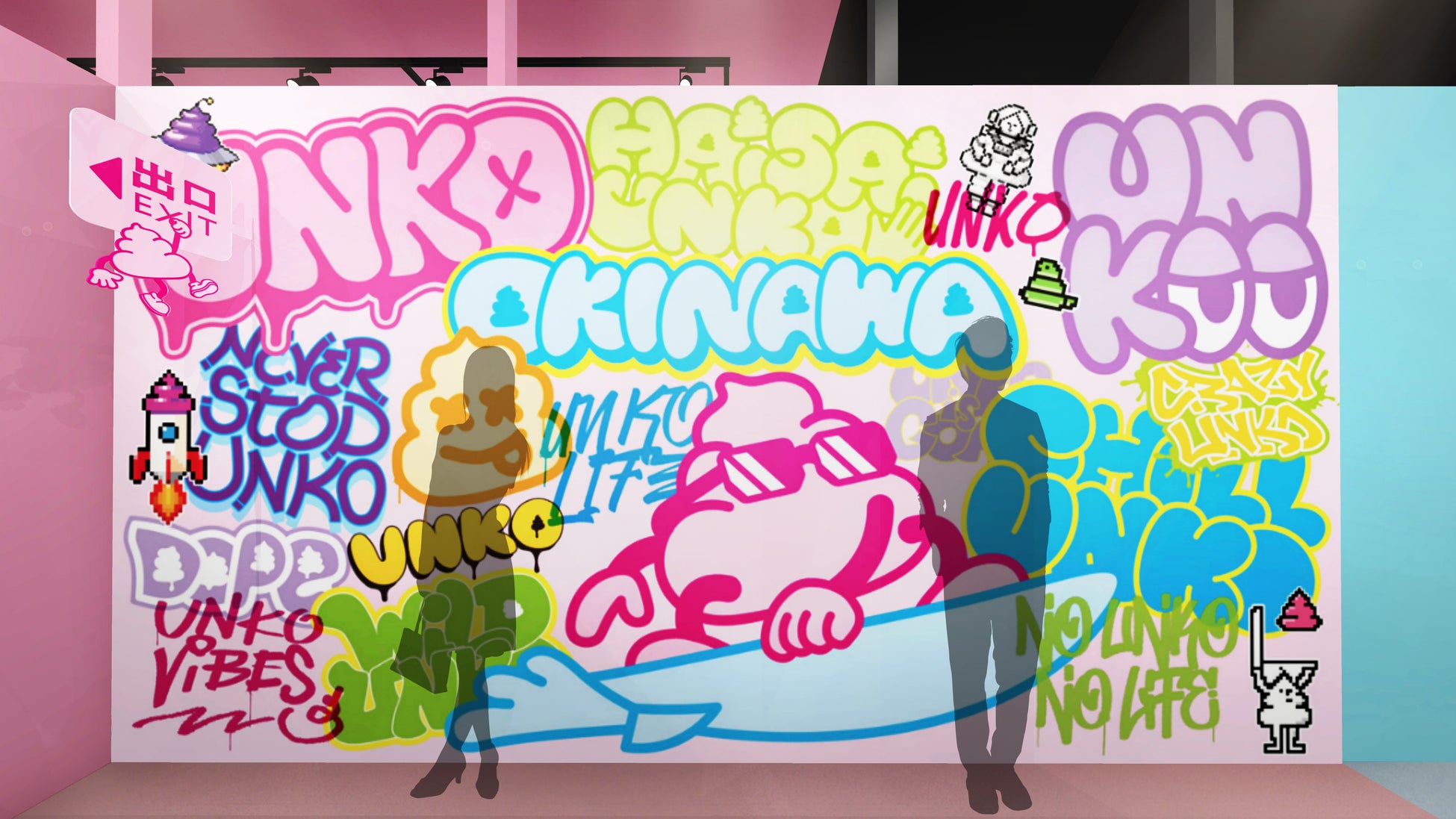 さらに沖縄限定の特別仕様として、背後に「うんこの滝」が流れ、沖縄らしい自然あふれるうんこの世界に没入できます。