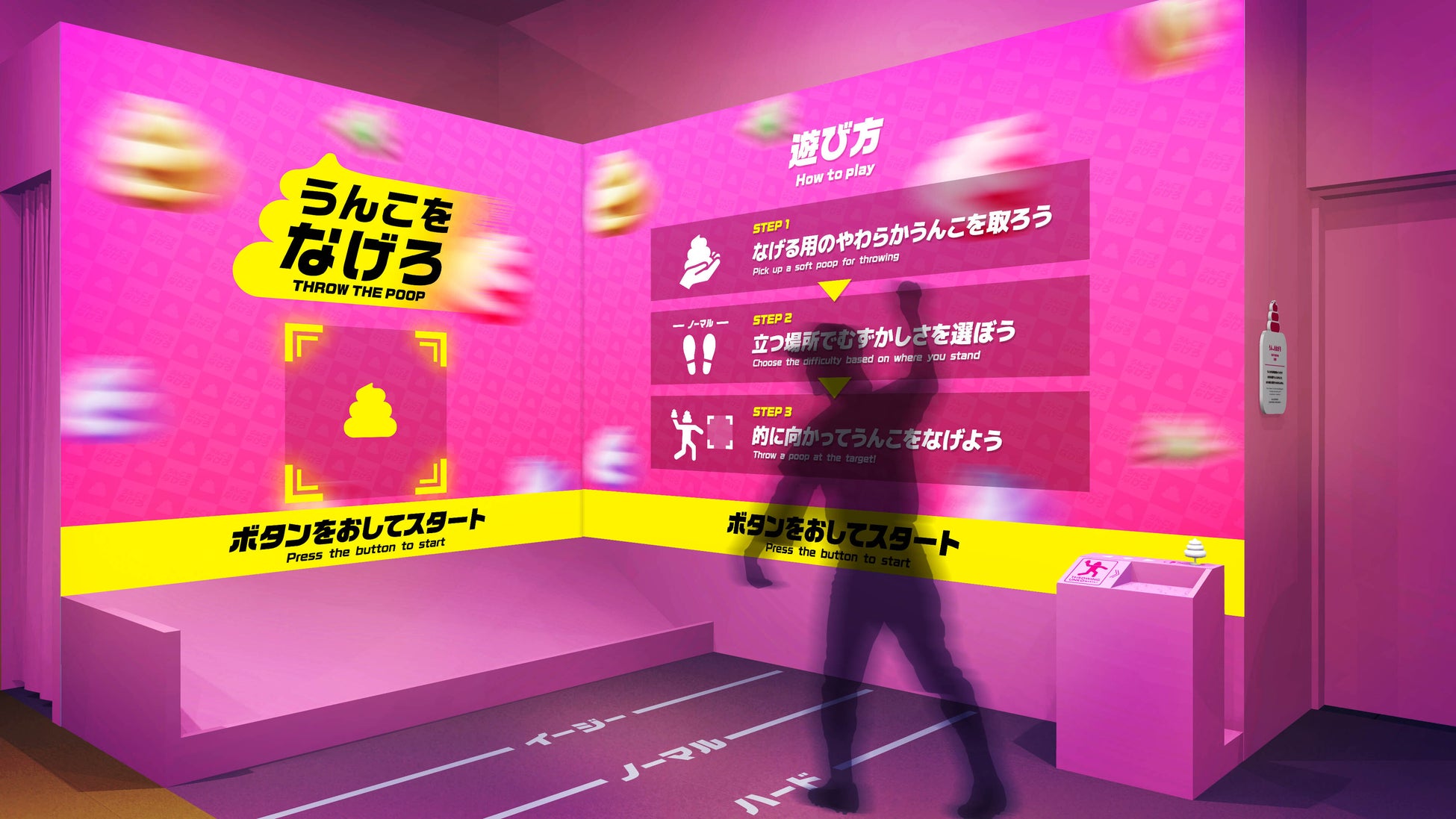 神経を集中させ、上から落ちてくるうんこを両手で受け止める、シンプルながら難易度の高いゲームです。また、体験中の姿をリプレイ映像で観ることができます。