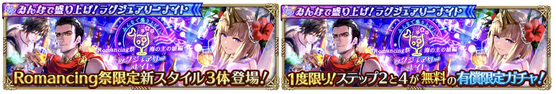 新ガチャ「みんなで盛り上げ!ラグジュアリーナイト Romancing祭 海の主の娘編」を開催いたします。