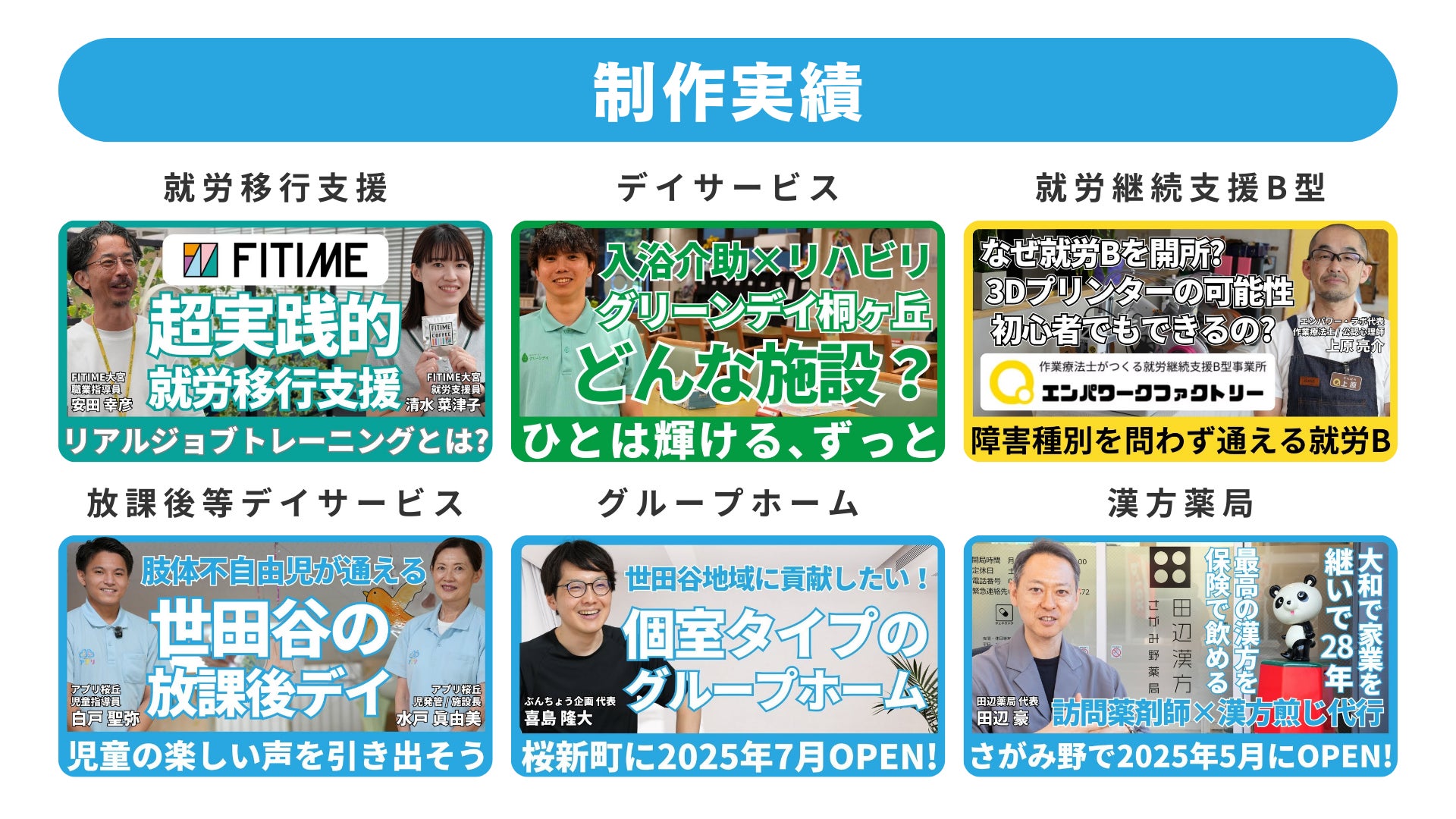 開所したてで、事業所の魅力を知っていただくのが難しく悩んでいました。素敵な動画を作っていただけて、近隣の支援者さんや利用者さん、ご家族にも事業所の魅力が伝わりやすくなったと感じています。