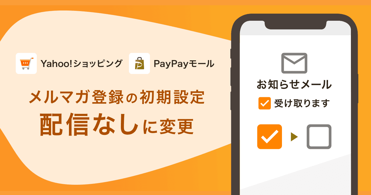 ヤフー株式会社(以下、Yahoo! JAPAN)は2022年6月22日から、ユーザーが「Yahoo!ショッピング」「PayPayモール」で注文する際の内容確認画面において、ストアやサービスからお知らせするメールマガジン(※1)などの配信で、初期設定を“配信なし”にする仕様(以下、デフォルトオフ)に変更します。このデフォルトオフによって、ユーザーは希望時のみ、メールマガジンを受信するよう、選択が可能になります。