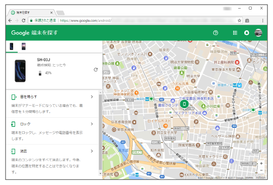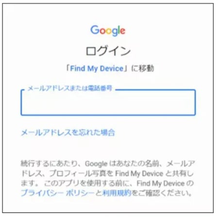 Step1:ブラウザでFind My Deviceにアクセスし、Googleアカウントとパスワードを入力してログインします。